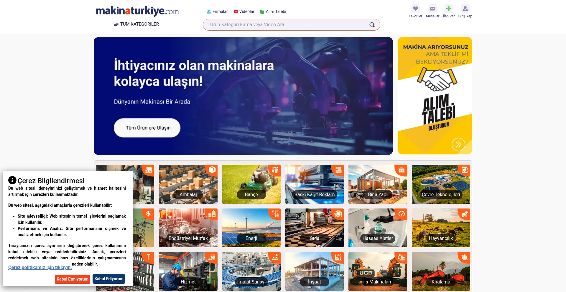 Her türlü endüstriyel ve ticari makina çeşitlerini tek bir portaldan keşfedin. En yeni modeller, rekabetçi fiyatlar ve güvenilir satıcılarla makinaturkiye.com'da!