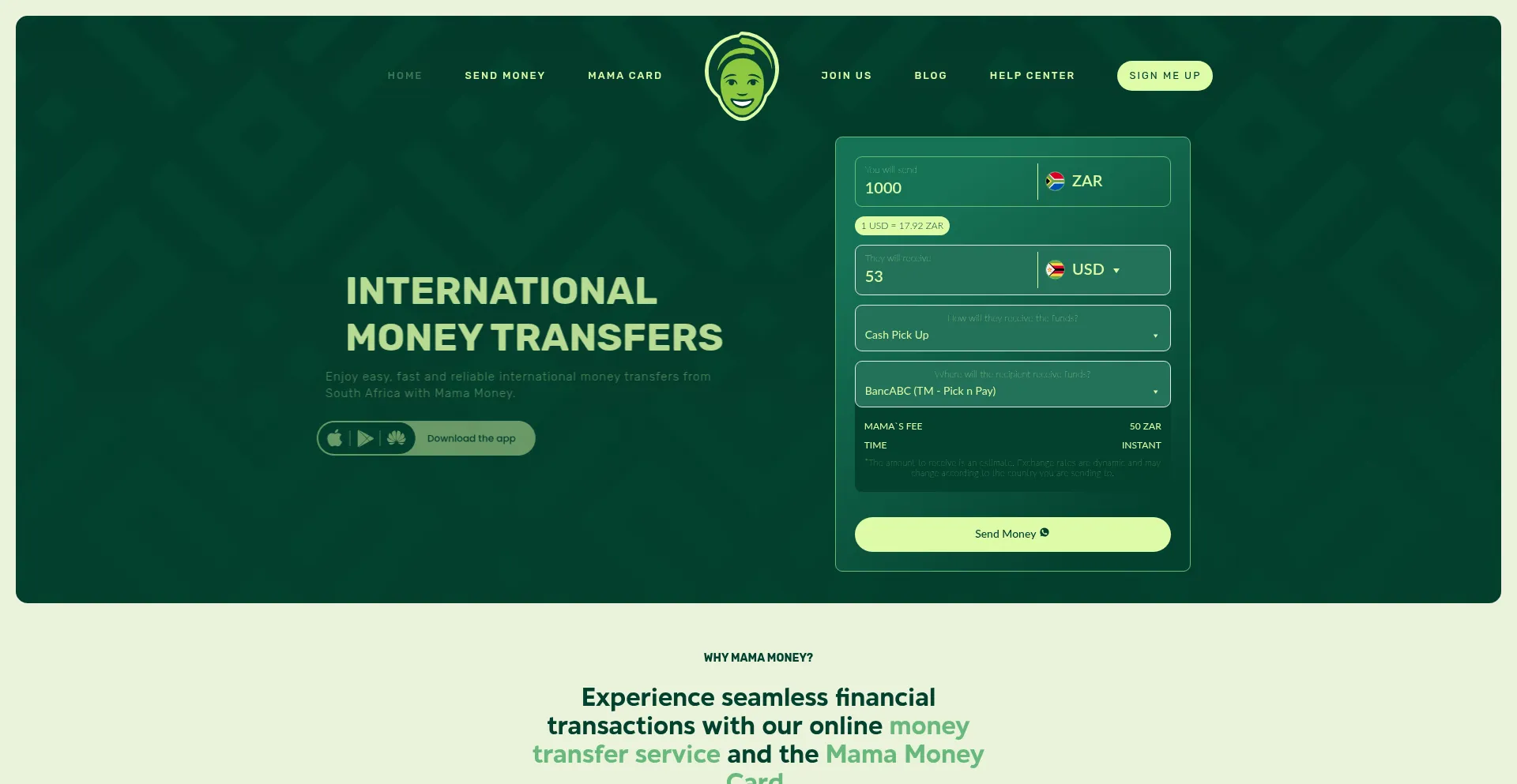 Enjoy safe, fast and reliable international money transfers from South Africa with Mama Money.