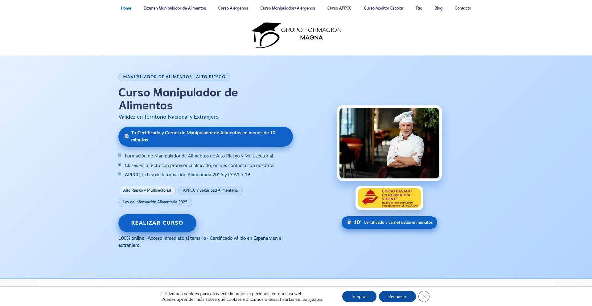 Manipulador de Alimentos Certificado y Carnet Homologado 2026