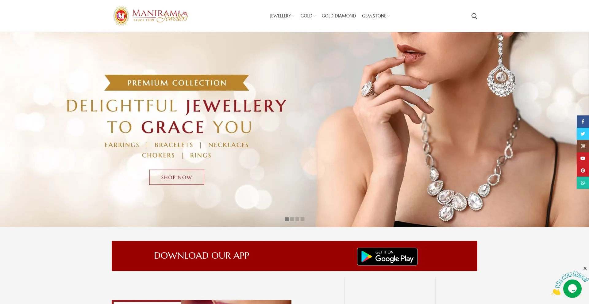 maniramjijewellers.in 提供 Android 设备移动应用程序,表明平台存在已扩展到网络服务之外。