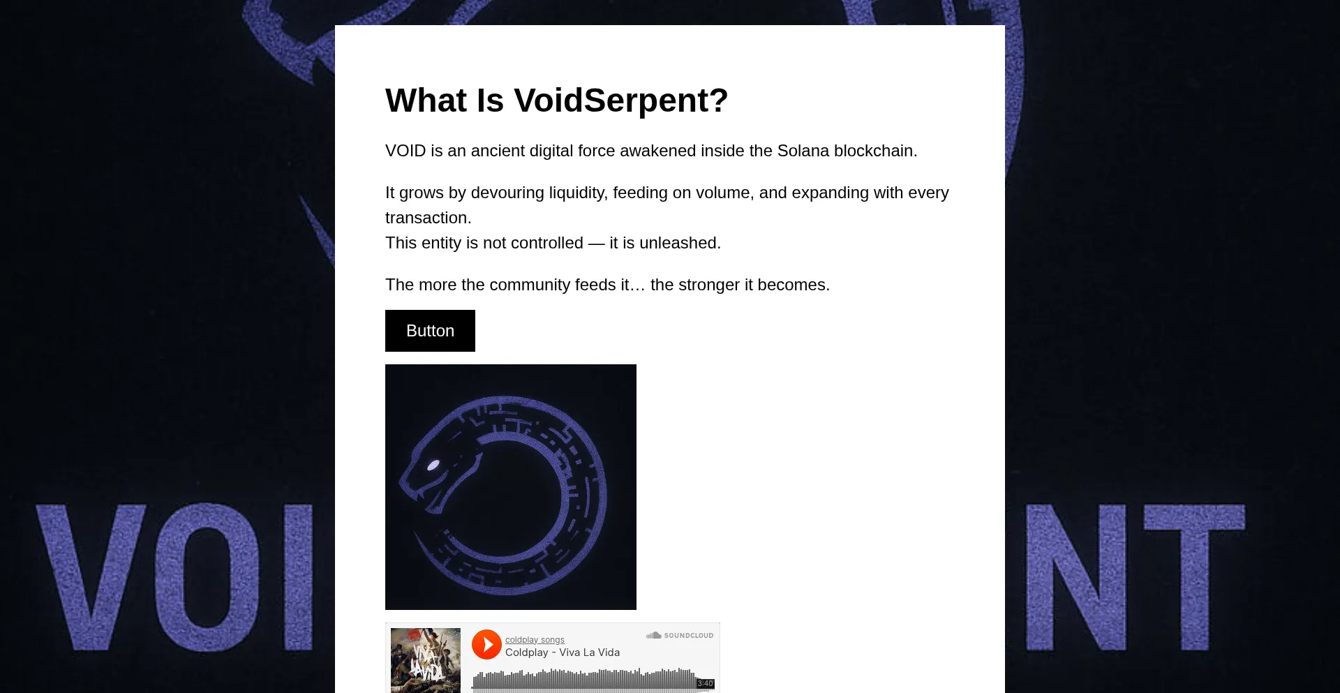 Buried deep inside forgotten archives, the VoidSerpent slept. Fragments of corrupted code held it in digital hibernation… until Solana’s high-speed rails awakened it. Now un...