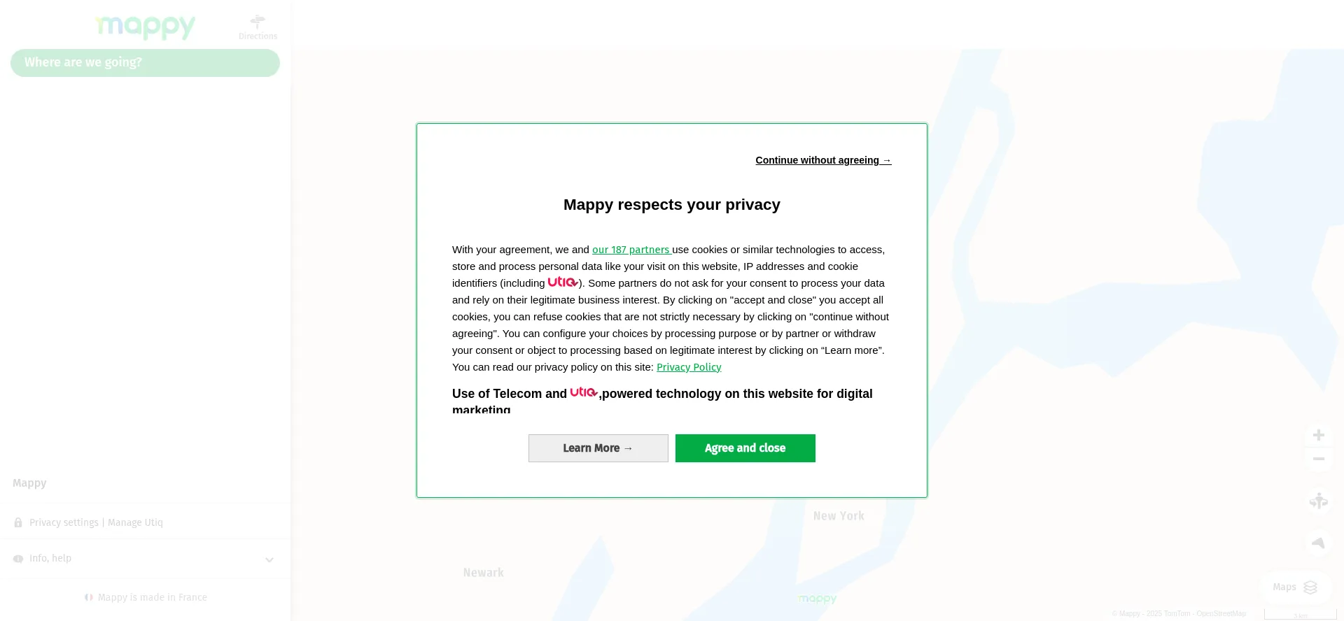 该网站实现符合GDPR或CCPA等隐私法规的cookie同意机制。这表明 mappy.com 遵守数据保护标准并为用户提供对个人数据收集实践的控制。