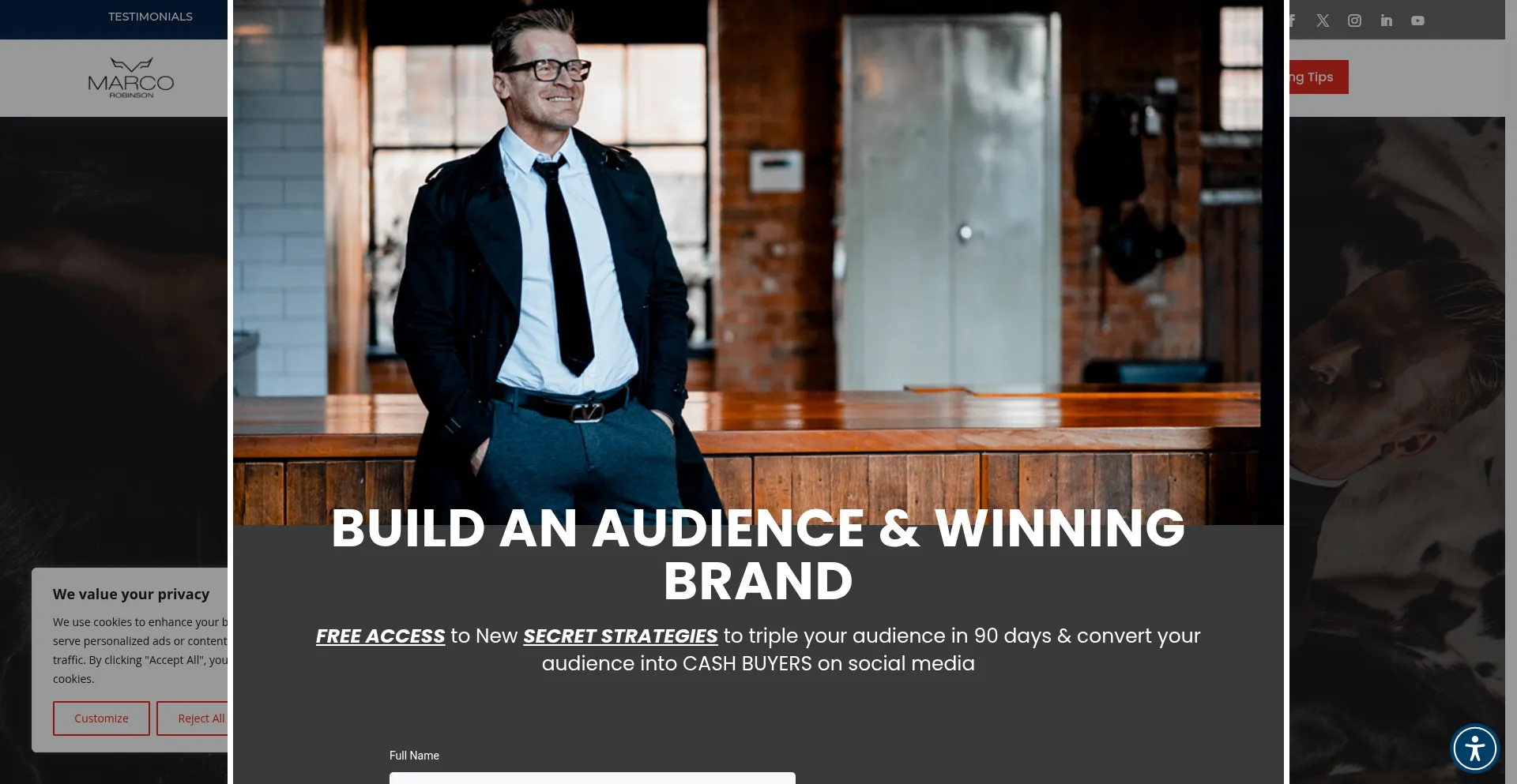网站上存在社交媒体链接表明 marcorobinson.com 在社交媒体上维护官方账户,这是可信度和参与度的积极信号。