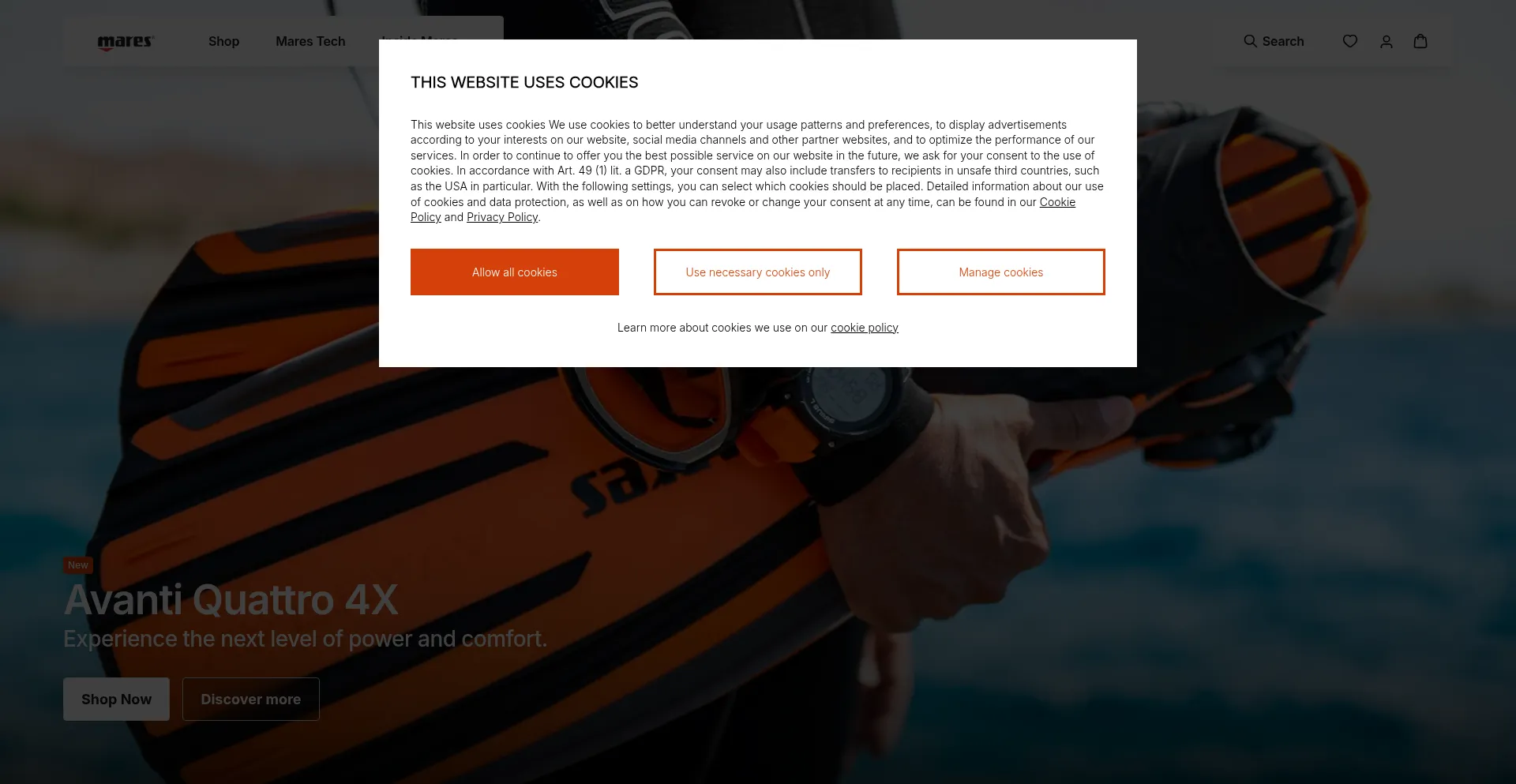 该网站实现符合GDPR或CCPA等隐私法规的cookie同意机制。这表明 mares.com 遵守数据保护标准并为用户提供对个人数据收集实践的控制。