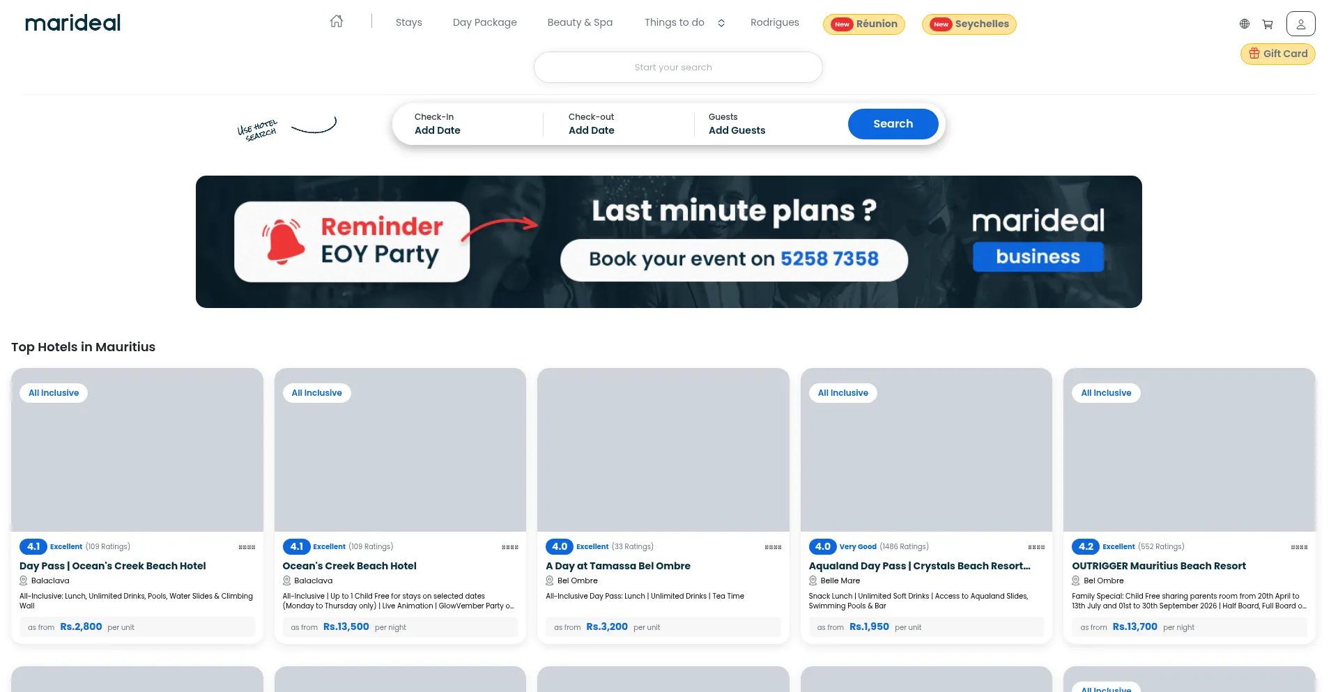 Book the best hotels and stays in Mauritius. Special offers for locals & expats on resorts, villas, and day packages across the island.