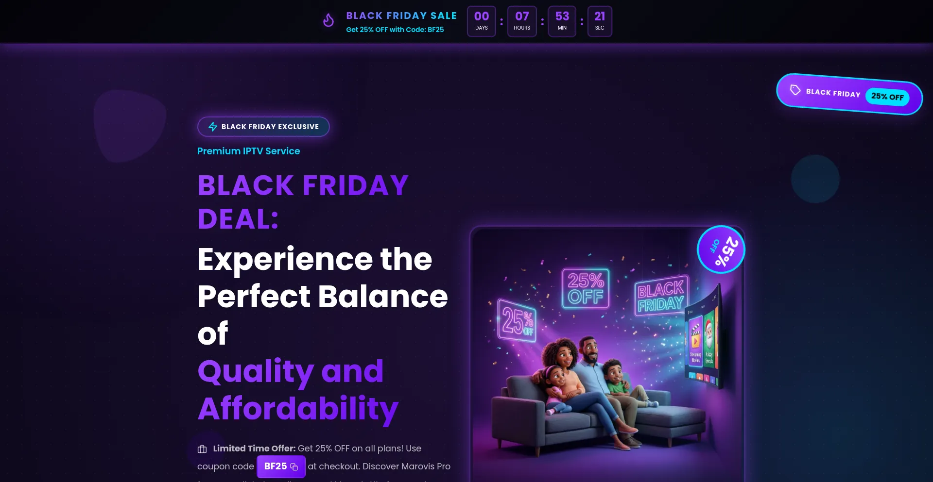 Experience Marovis lΡΤV premium service with 36,000+ live channels and 137,000+ VOD content. Enjoy high-quality streaming with Anti-Freeze™ technology, 4K content and 24/7 s...