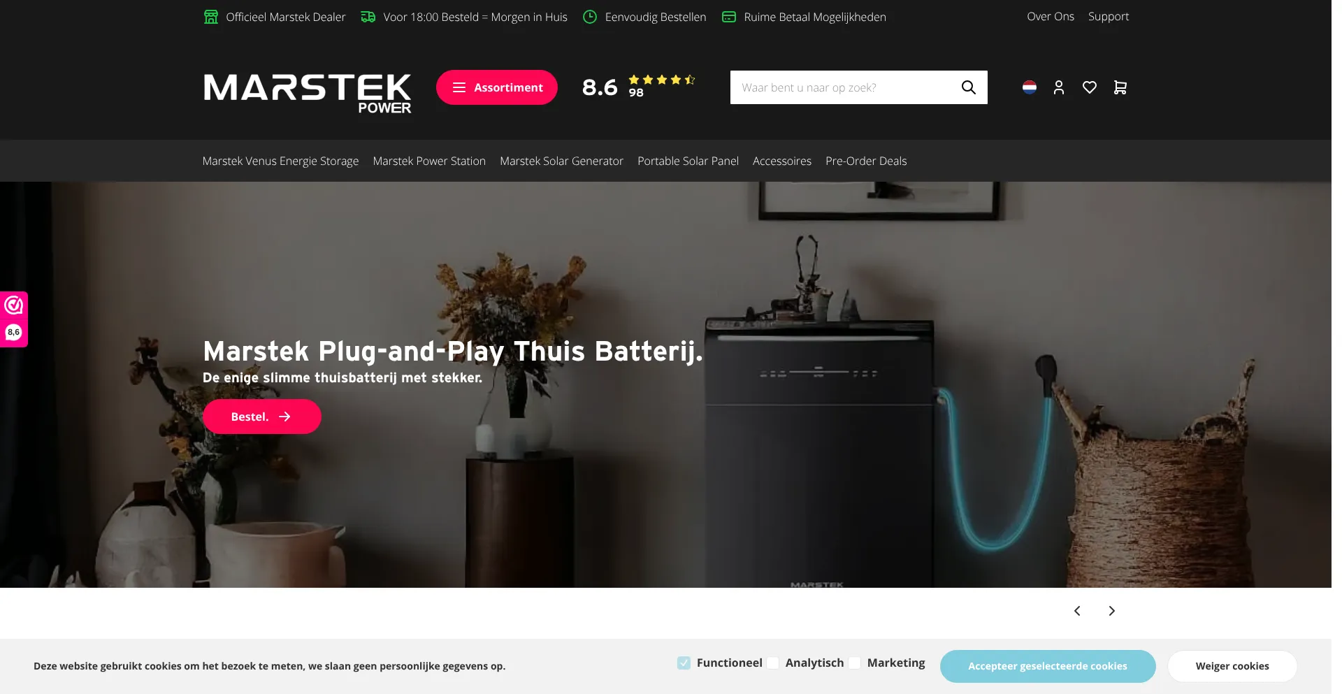 分析表明 marstek-power.eu 作为电子商务平台运营,促进商品或服务的在线交易。该网站实现了购物车功能、支付处理系统和产品目录功能,这些是商业零售运营的典型特征。