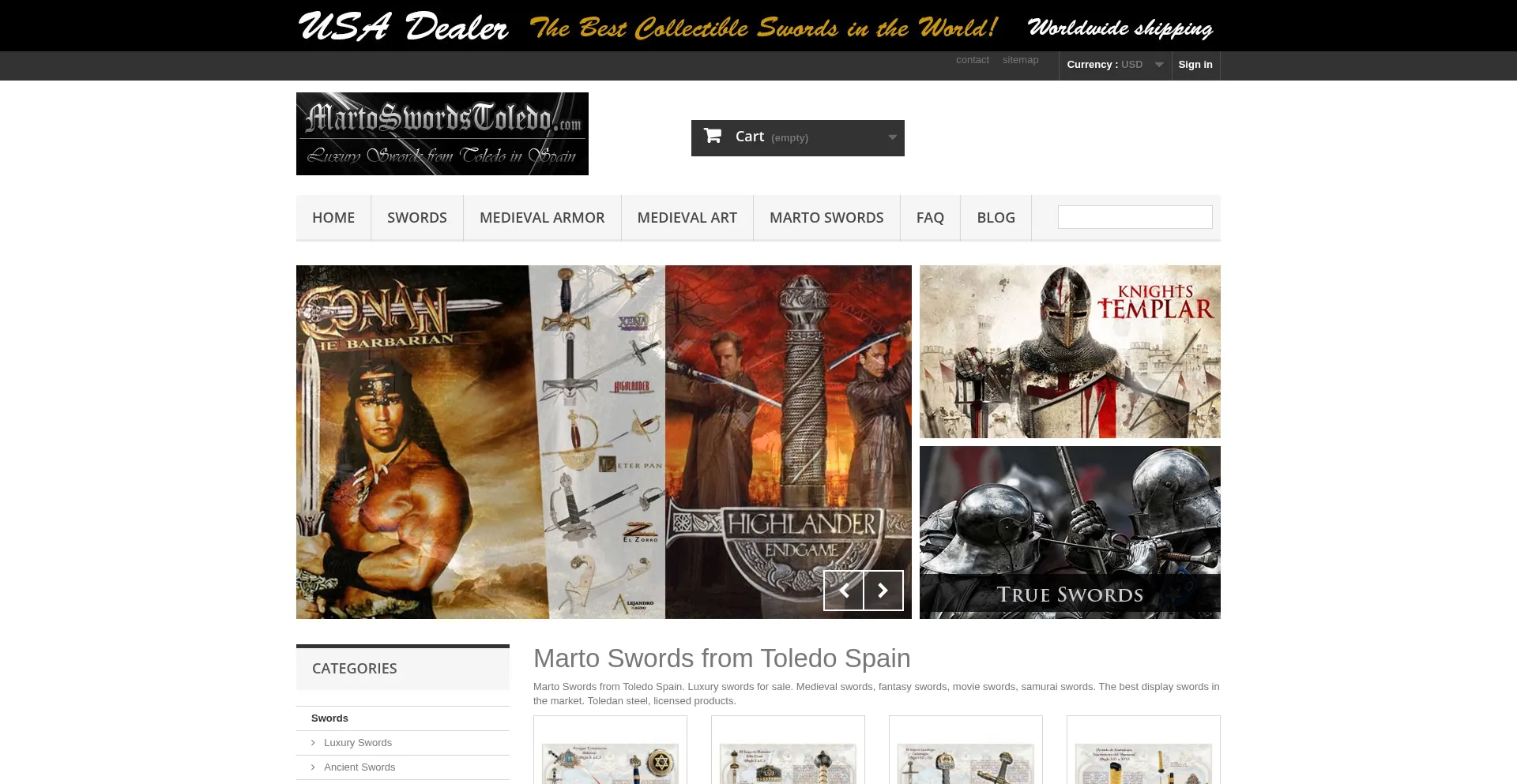 Marto Swords from Toledo Spain. Luxury swords for sale. Medieval swords, fantasy swords, movie swords, samurai swords.