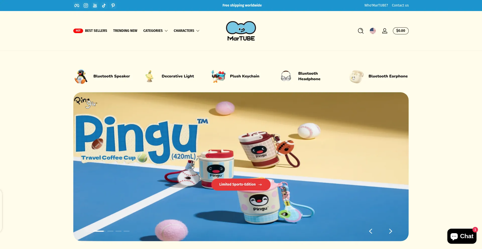 MarTUBE offers enchanting co-branded gifts featuring Pingu、The Little Prince and Sanrio characters like Hello Kitty、Pochacco. From adorable Bluetooth speakers to charming co...