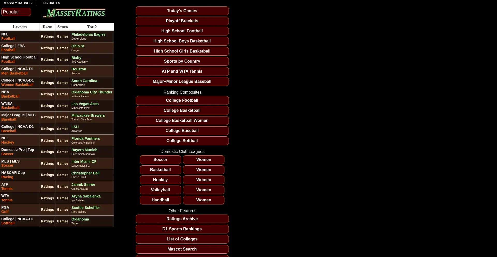 Massey Ratings - Sports Computer Ratings, Scores, and Analysis