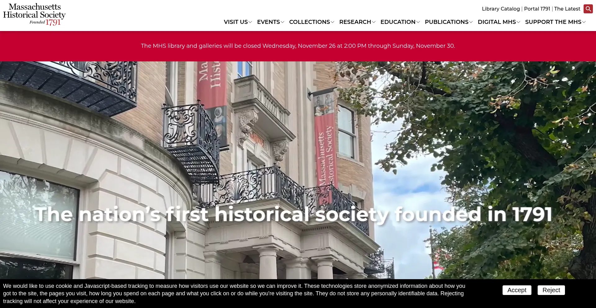 该网站实现符合GDPR或CCPA等隐私法规的cookie同意机制。这表明 masshist.org 遵守数据保护标准并为用户提供对个人数据收集实践的控制。
