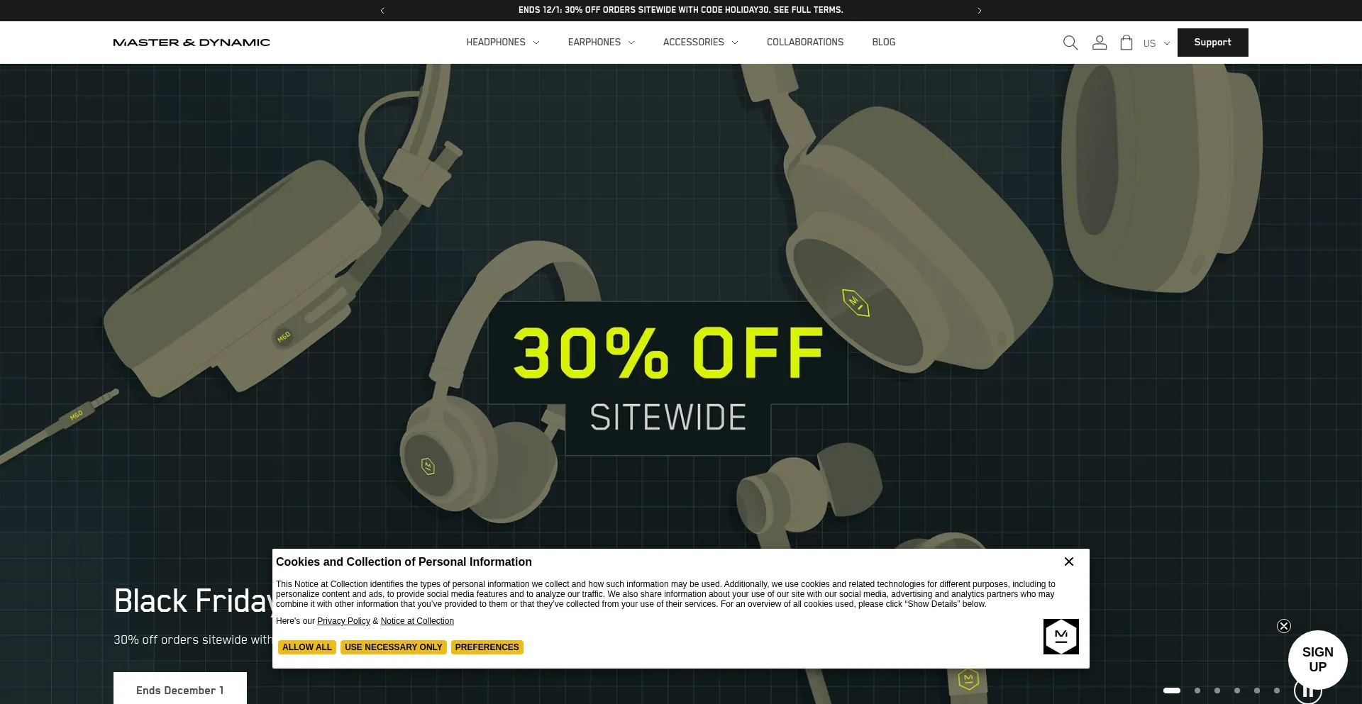 该网站实现符合GDPR或CCPA等隐私法规的cookie同意机制。这表明 masterdynamic.com 遵守数据保护标准并为用户提供对个人数据收集实践的控制。