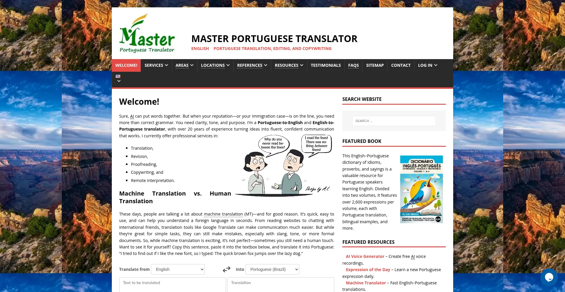 网站上存在社交媒体链接表明 masterportuguesetranslator.com 在社交媒体上维护官方账户,这是可信度和参与度的积极信号。
