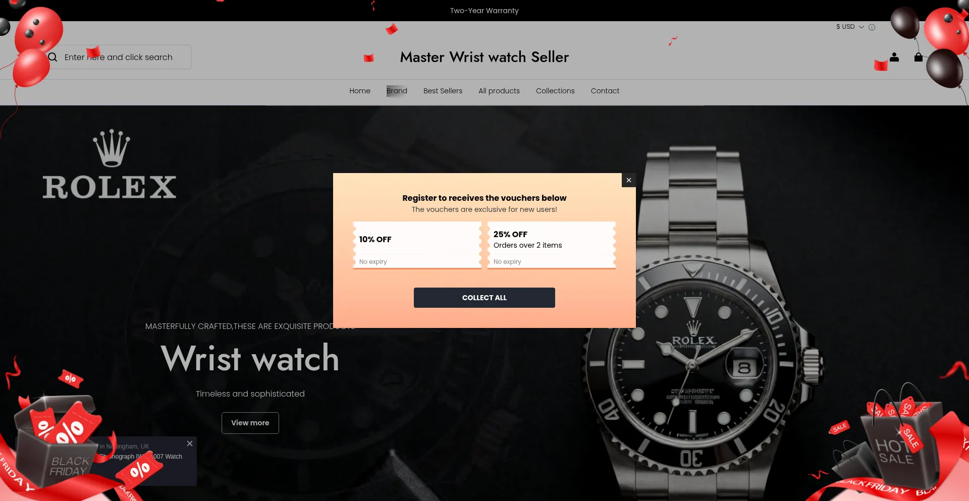 分析表明 masterwristwatchseller.com 作为电子商务平台运营,促进商品或服务的在线交易。该网站实现了购物车功能、支付处理系统和产品目录功能,这些是商业零售运营的典型特征。