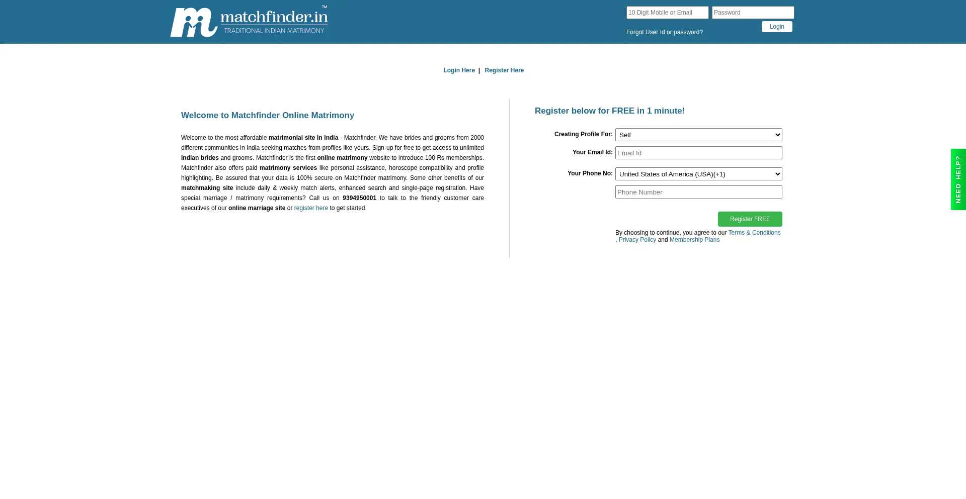 Matchfinder is an Indian Matrimony website offering free & paid memberships to marriage seekers. We are a premier online matrimonial site for brides and grooms. Call now - 09394...