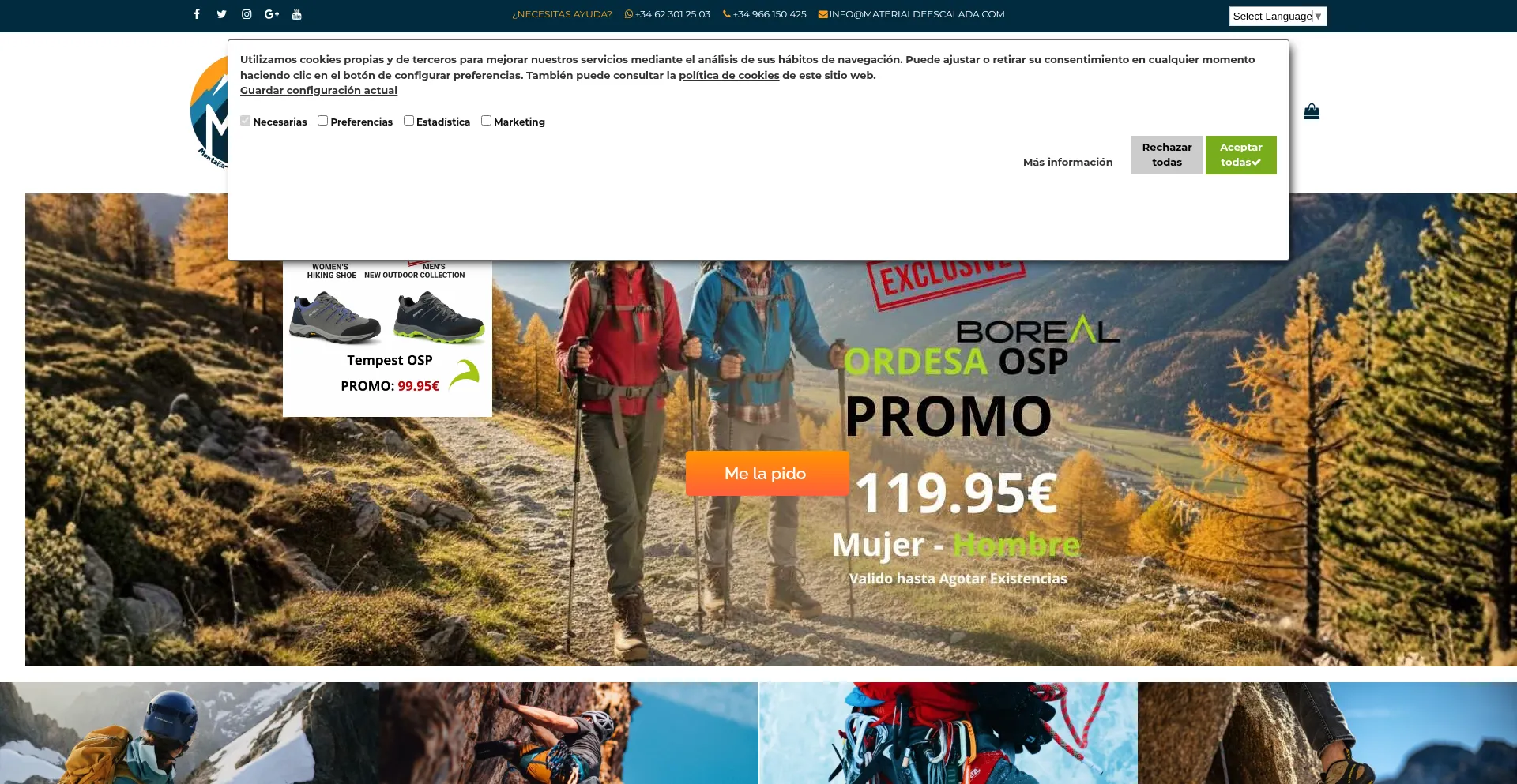网站上存在社交媒体链接表明 materialdeescalada.com 在社交媒体上维护官方账户,这是可信度和参与度的积极信号。