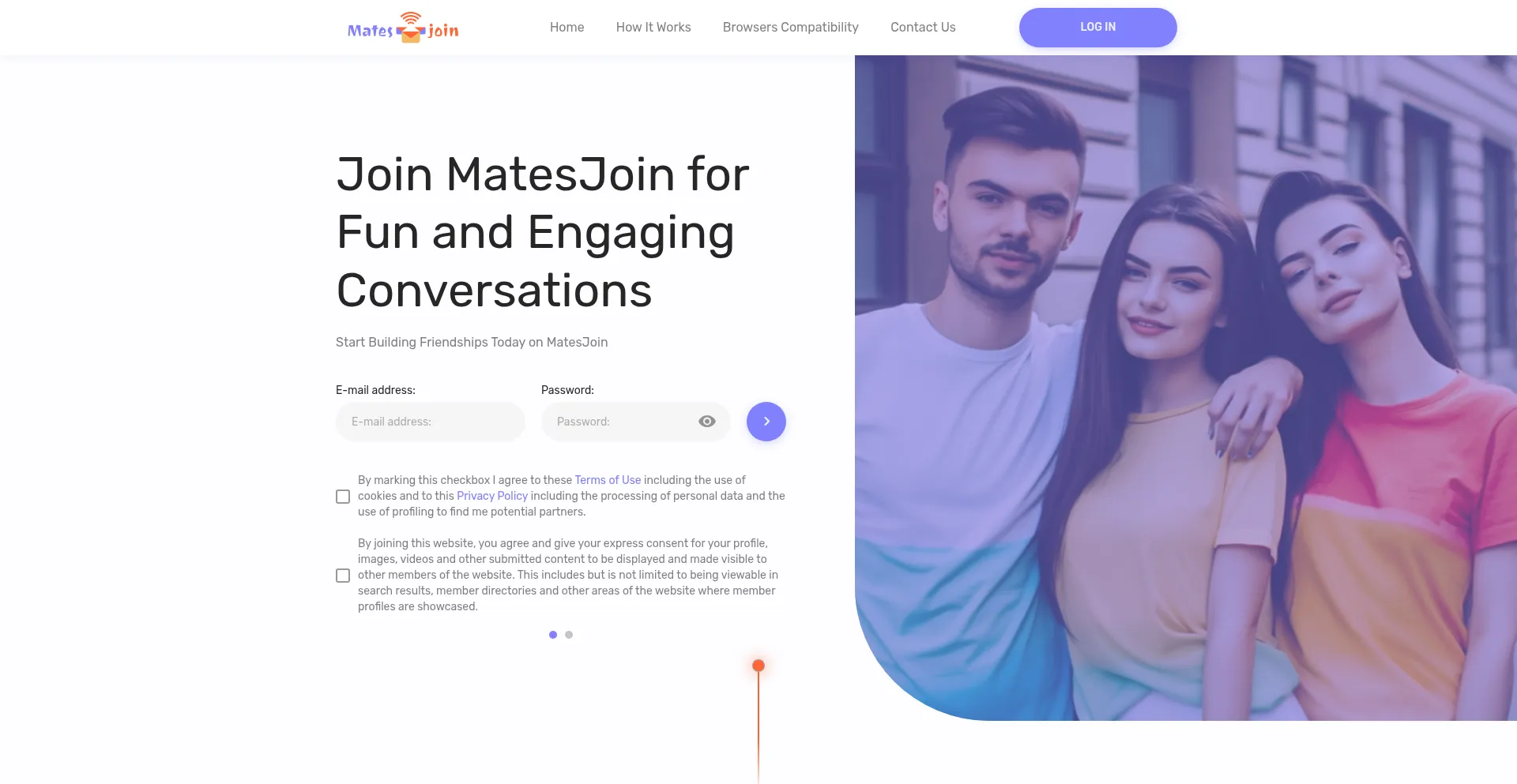 该网站实现数据收集表单,请求个人信息,包括姓名、电子邮件地址、电话号码或其他敏感详细信息。用户应验证 matesjoin.com 的合法性并在提交个人数据前查看隐私政策。