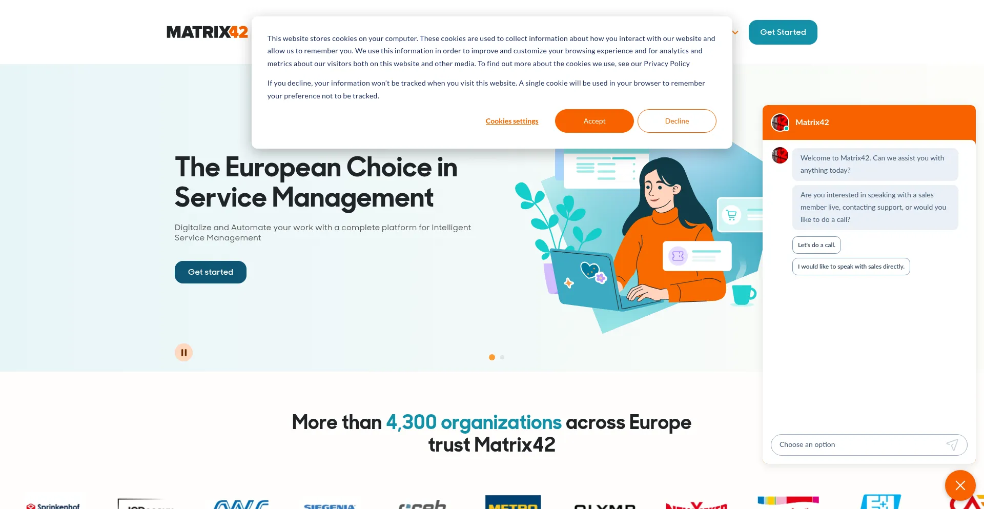 matrix42.com 使用 Google Tag Manager 在其网站上添加和更新追踪代码(标签)。