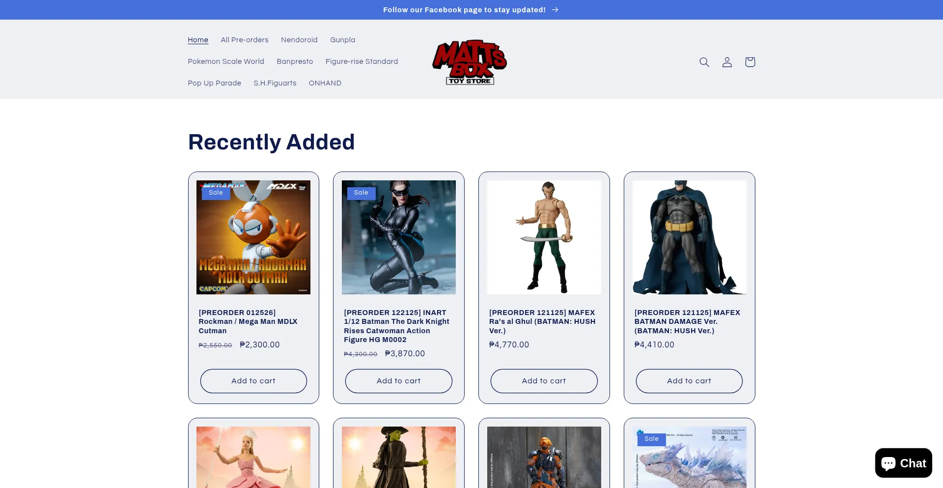 Matt’s Box PH is a one-stop shop for McFarlane Figures, Nendoroids, Gunplas, Pokemon Merch, SH Figuarts, Funko Pops and more! Shopee: www.shopee.ph/mattsboxph