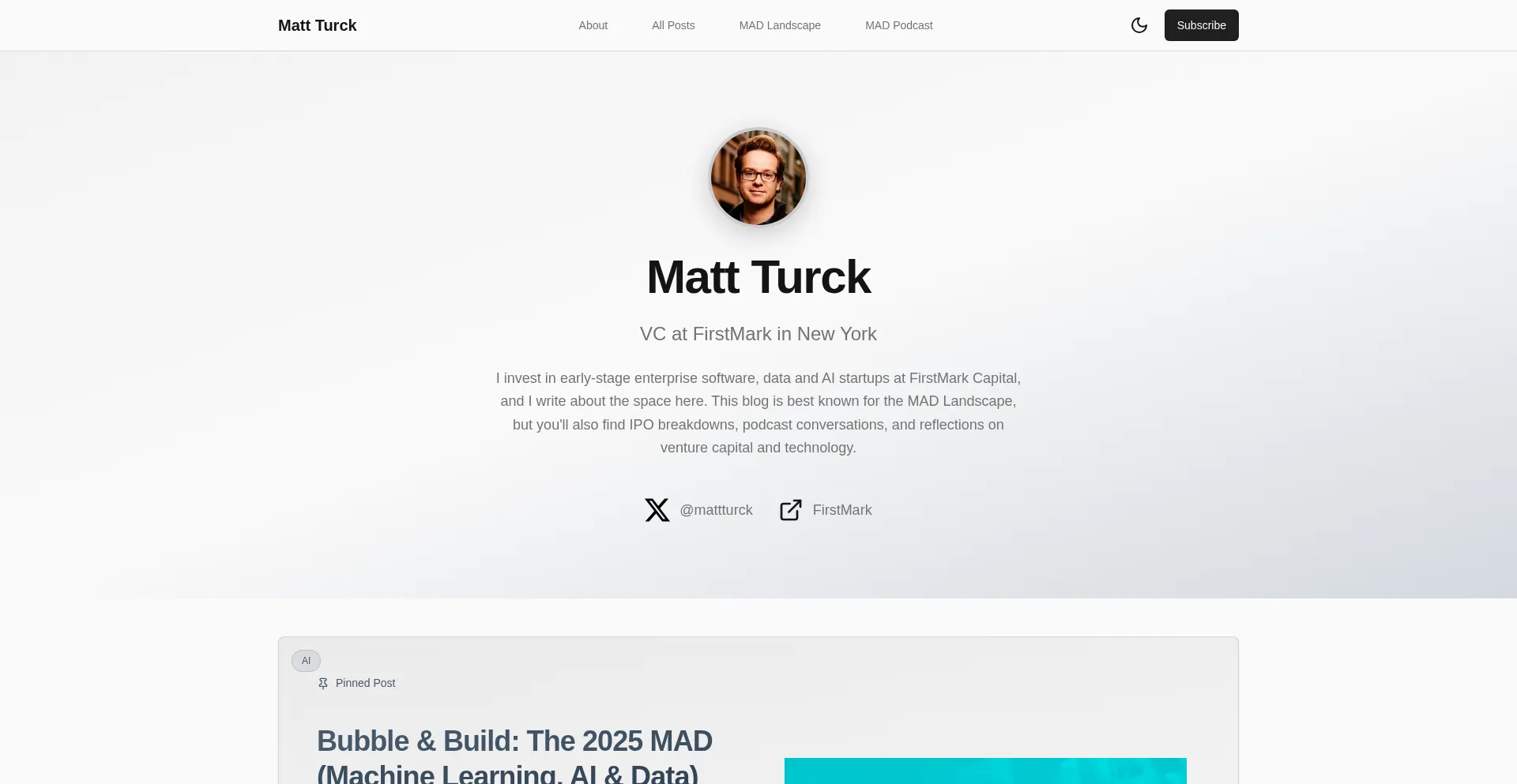 网站上存在社交媒体链接表明 mattturck.com 在社交媒体上维护官方账户,这是可信度和参与度的积极信号。
