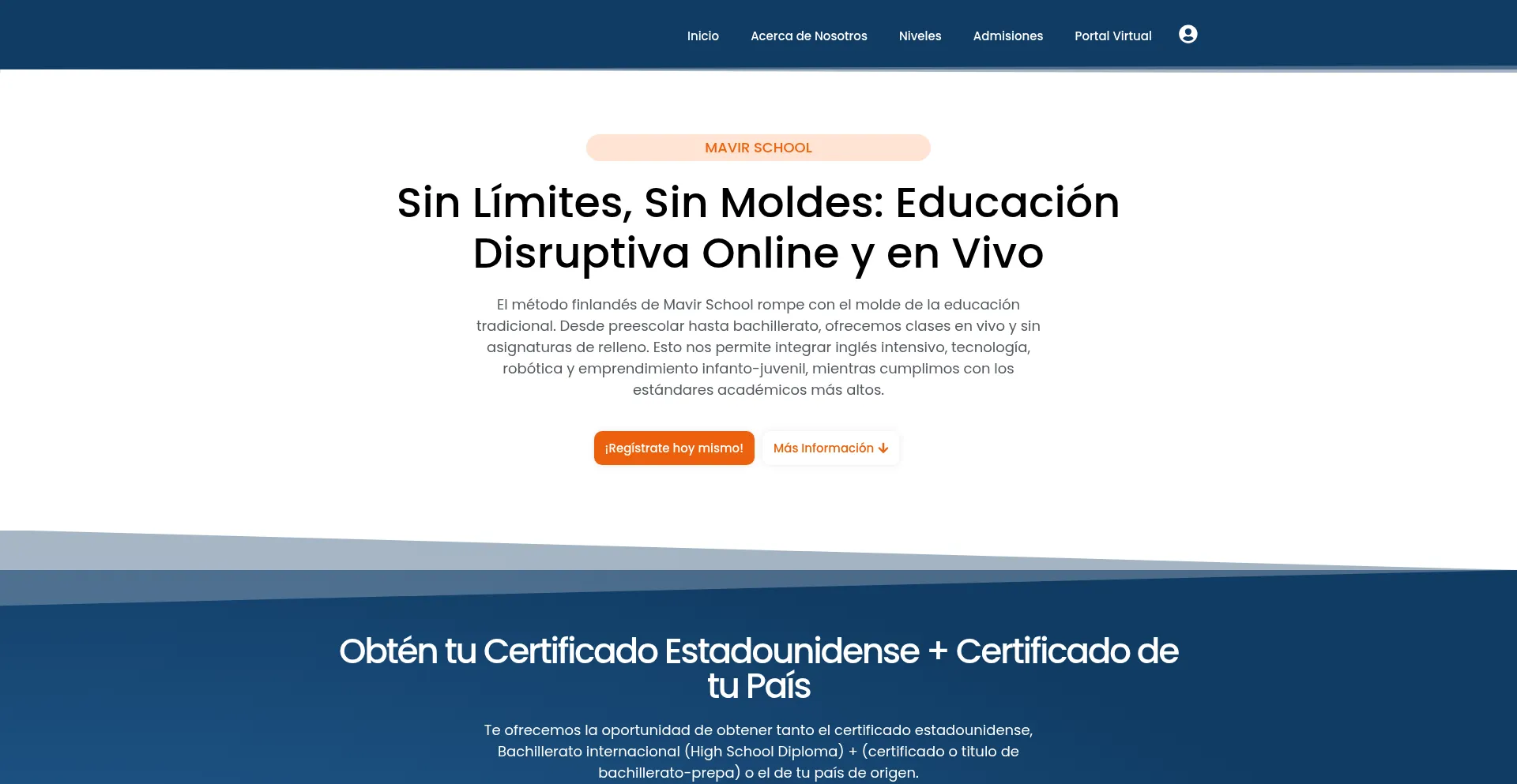 Educación en vivo disruptiva online y presencial en Mavir School. Formamos estudiantes para el futuro digital con aprendizaje virtual.