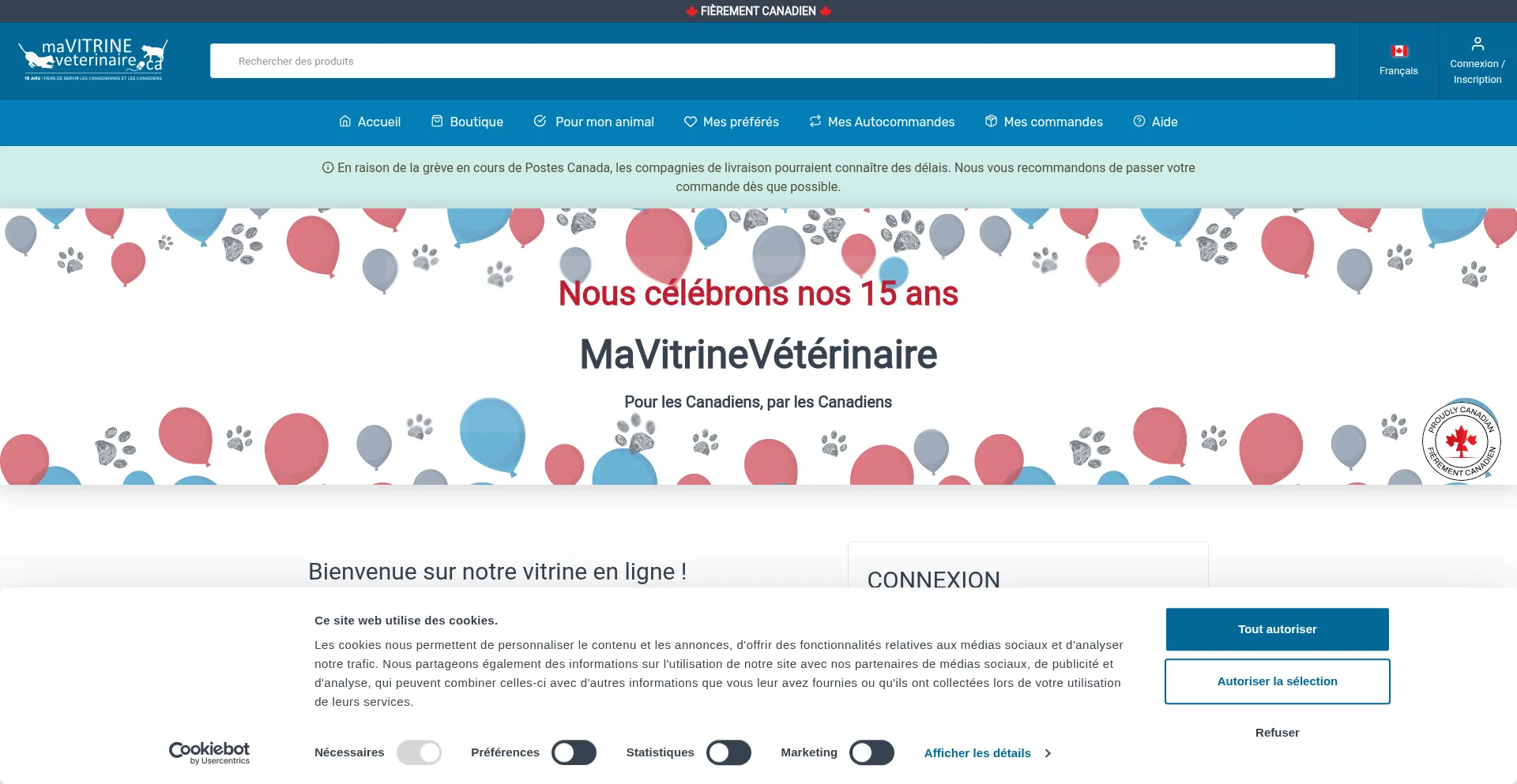 该网站实现符合GDPR或CCPA等隐私法规的cookie同意机制。这表明 mavitrineveterinaire.ca 遵守数据保护标准并为用户提供对个人数据收集实践的控制。