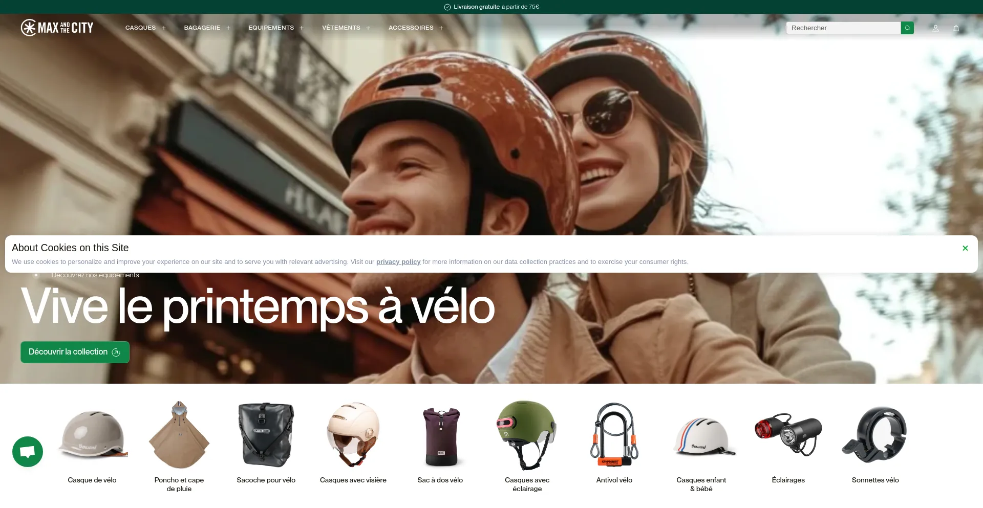 Découvrez la sélection de Max pour vous équiper dans vos trajets quotidiens : casque, poncho, sacoche, éclairage, etc. Vous trouverez tout ce dont vous avez besoin pour roul...