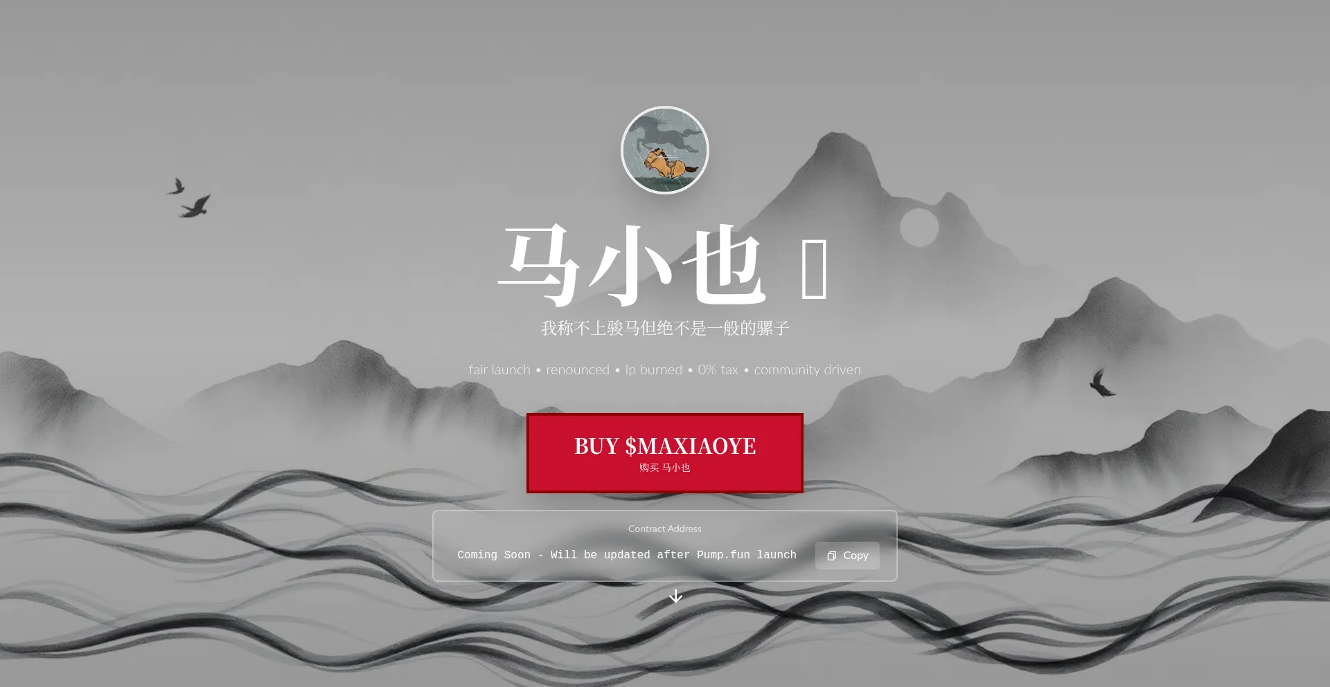 马小也 ($MAXIAOYE) is a culturally rich Solana meme coin inspired by traditional Chinese ink wash painting. Fair launch on Pump.fun, 0% tax, LP burned, community driven. Join...