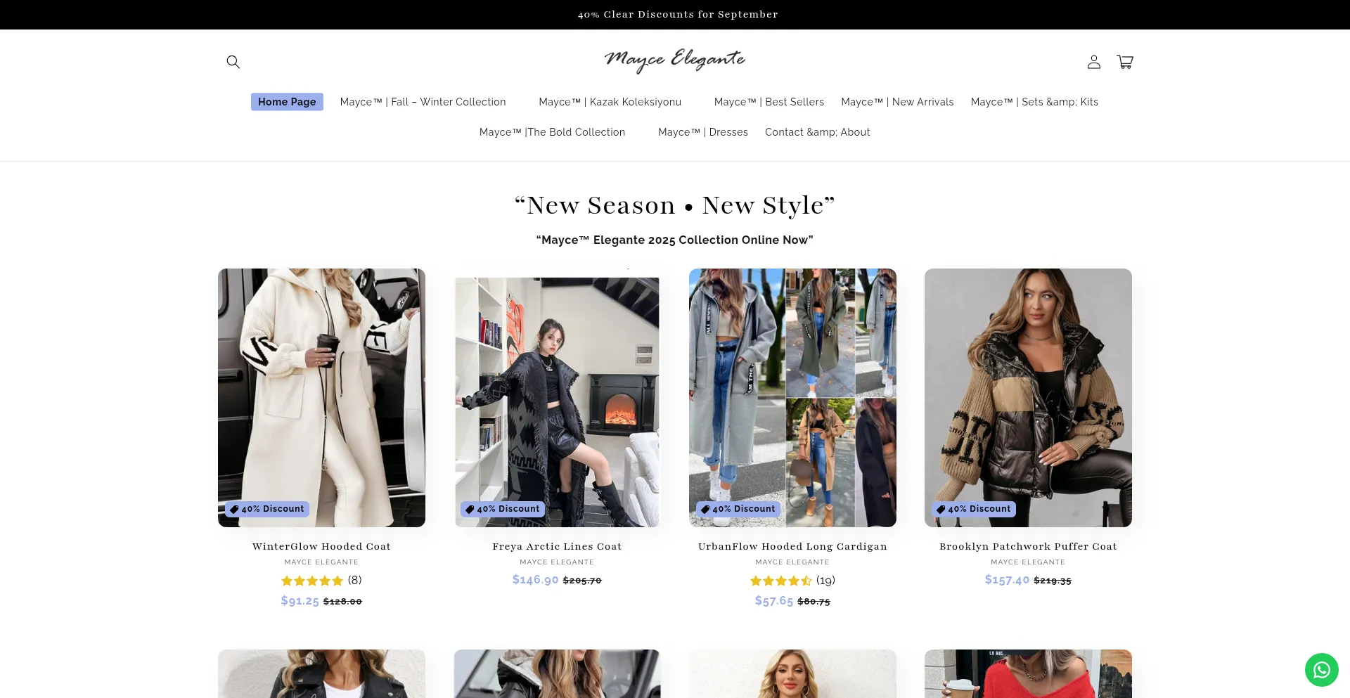 “Mayce™ Elegante | Zarafeti ve modern şıklığı birleştiren elbiseler, özgün tasarımlar ve kaliteli koleksiyonlarla tarzına değer kat.”