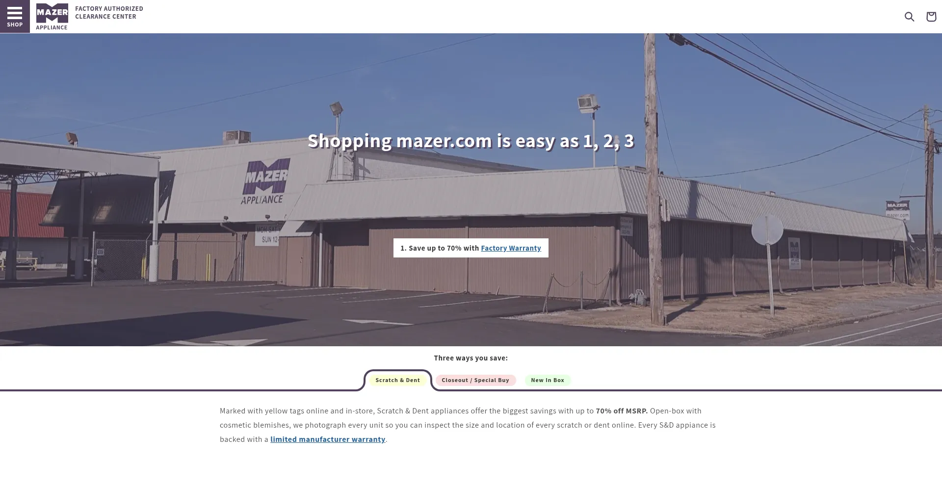 Mazer Appliance: GE, LG, Frigidaire Scratch and Dent Clearance