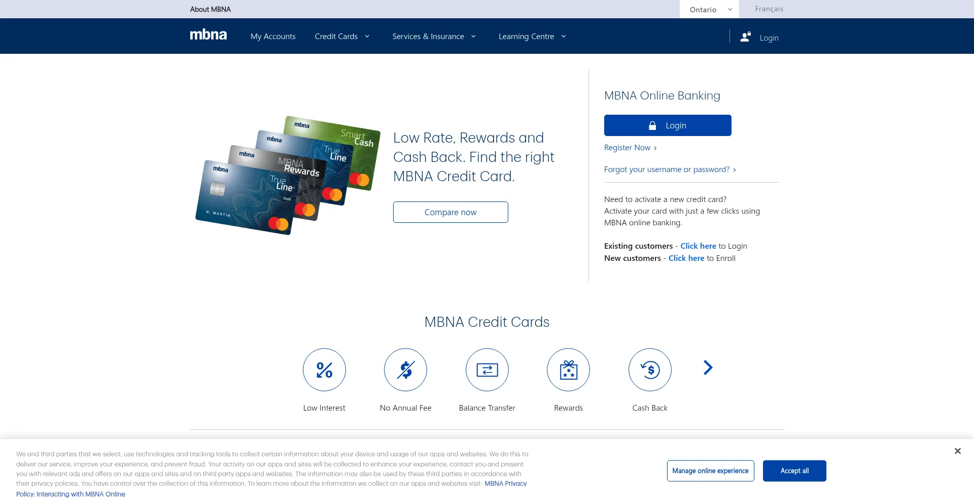 Offering both rewards credit cards with no annual fee as well as low interest credit card options | MBNA Canada
