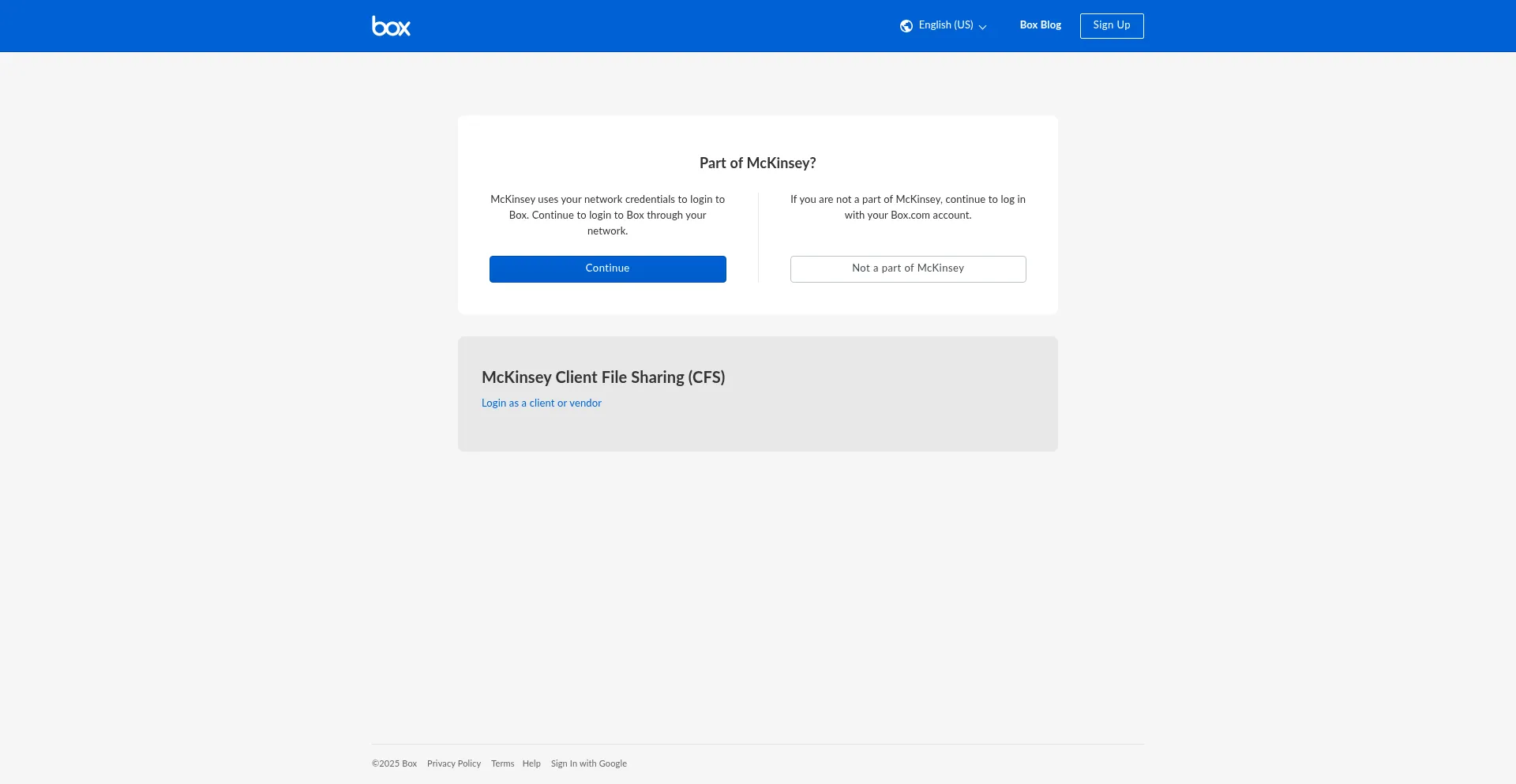 该网站实现数据收集表单,请求个人信息,包括姓名、电子邮件地址、电话号码或其他敏感详细信息。用户应验证 mckinsey.box.com 的合法性并在提交个人数据前查看隐私政策。