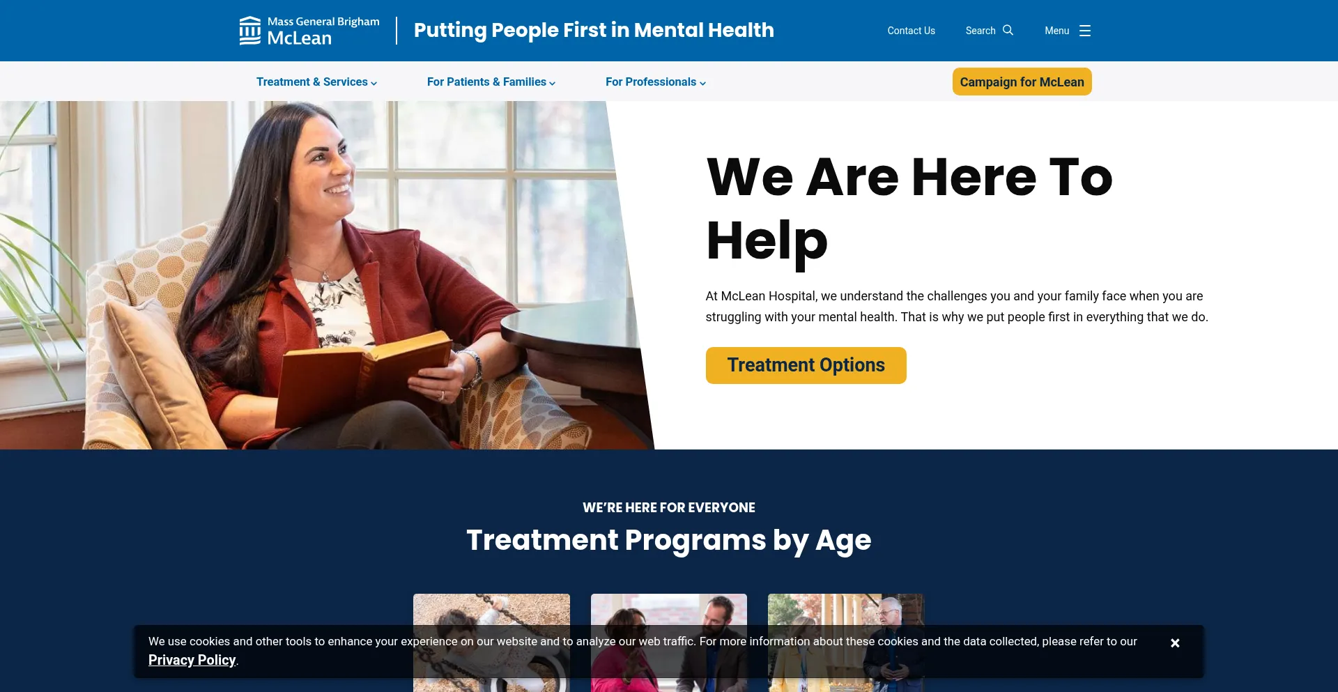 该网站实现符合GDPR或CCPA等隐私法规的cookie同意机制。这表明 mcleanhospital.org 遵守数据保护标准并为用户提供对个人数据收集实践的控制。