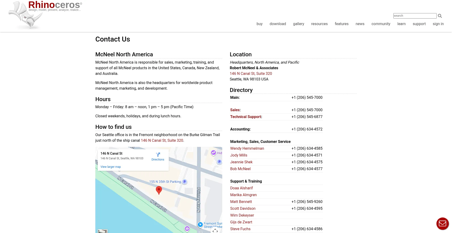 Rhinoceros 3D: Contact information for Robert McNeel & Associates