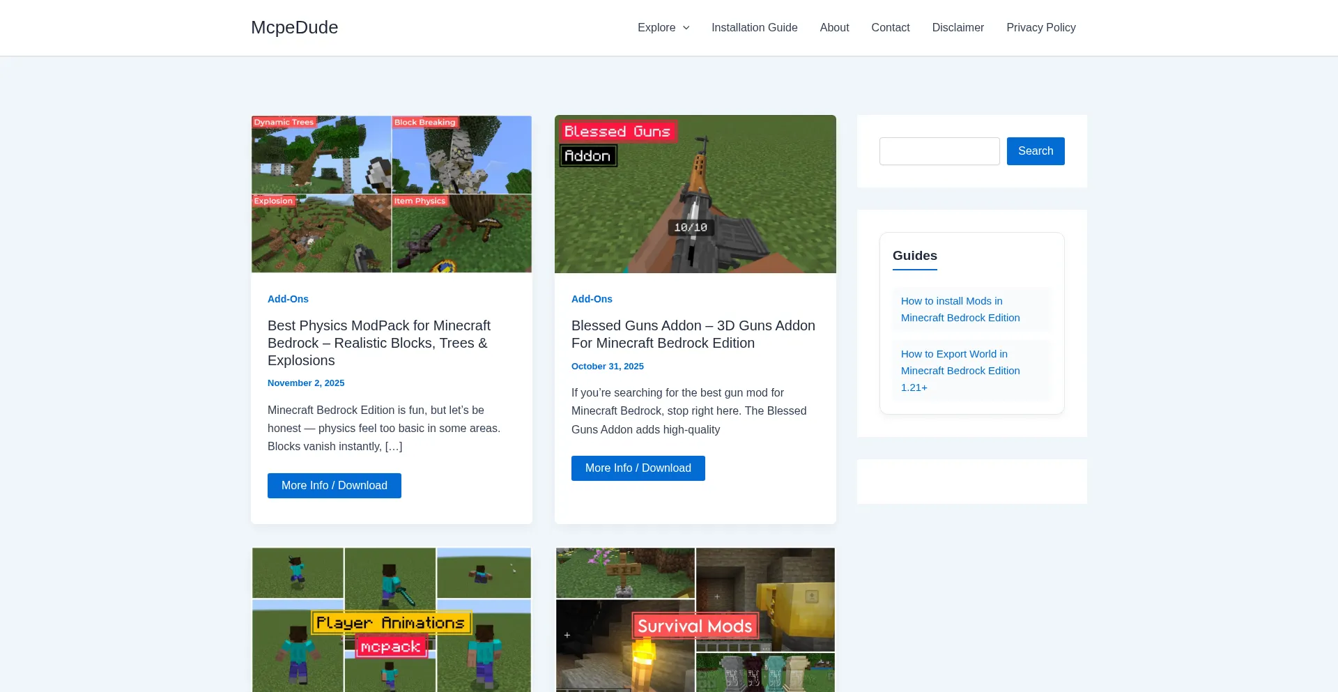 McpeDude - Best Minecraft Bedrock Mods & Addons
