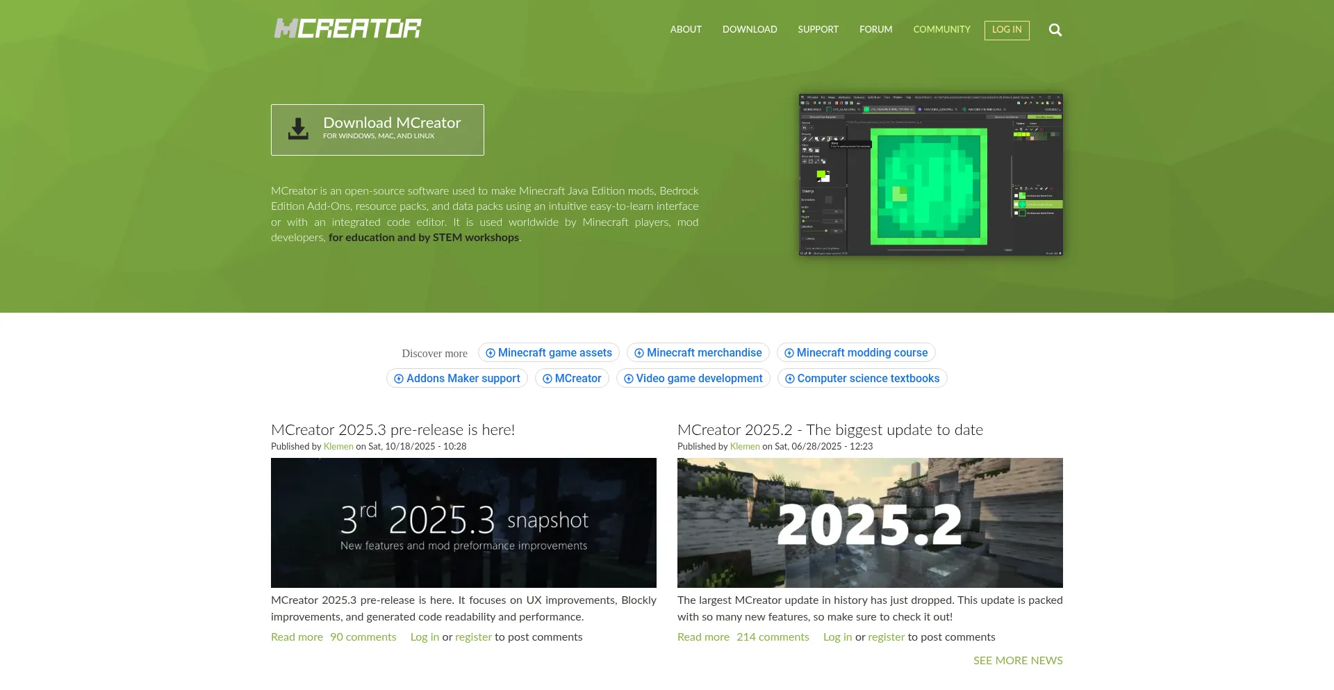 MCreator is open source software used to make Minecraft Java Edition mods, Bedrock Edition Add-Ons, resource packs, and data packs using an intuitive easy-to-learn interface or ...
