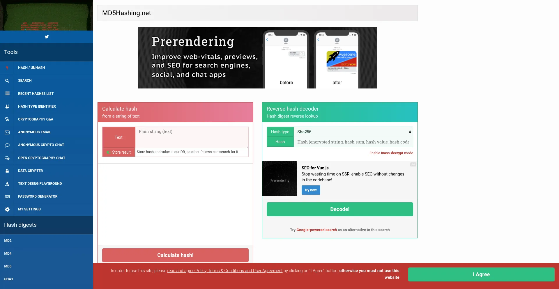 Reverse hash decoder, encoding, encryption, hashing, and anonymity toolkit with free encrypted chat and anonymous disposable email inbox