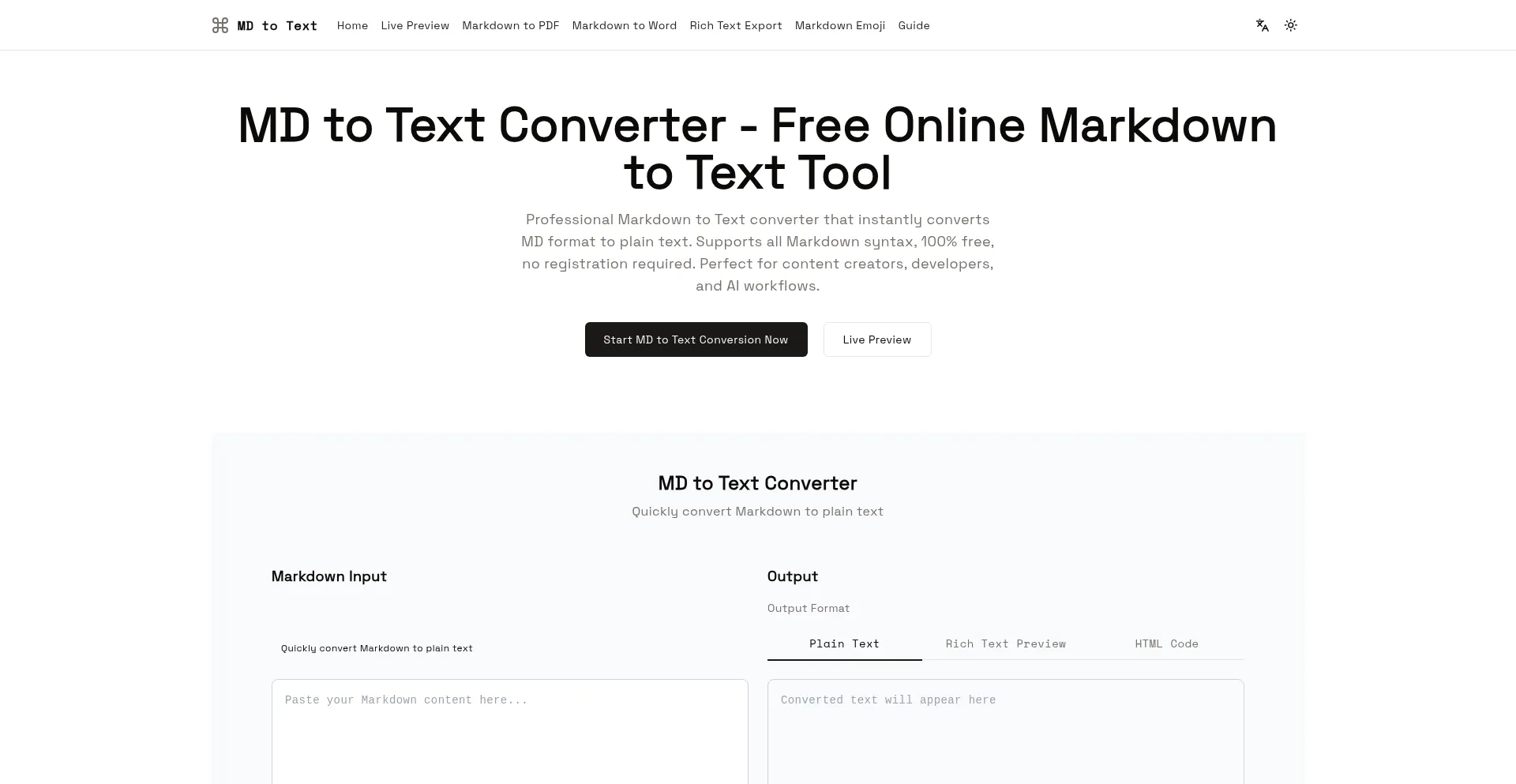 MD to Text - Online Markdown to Text Tool