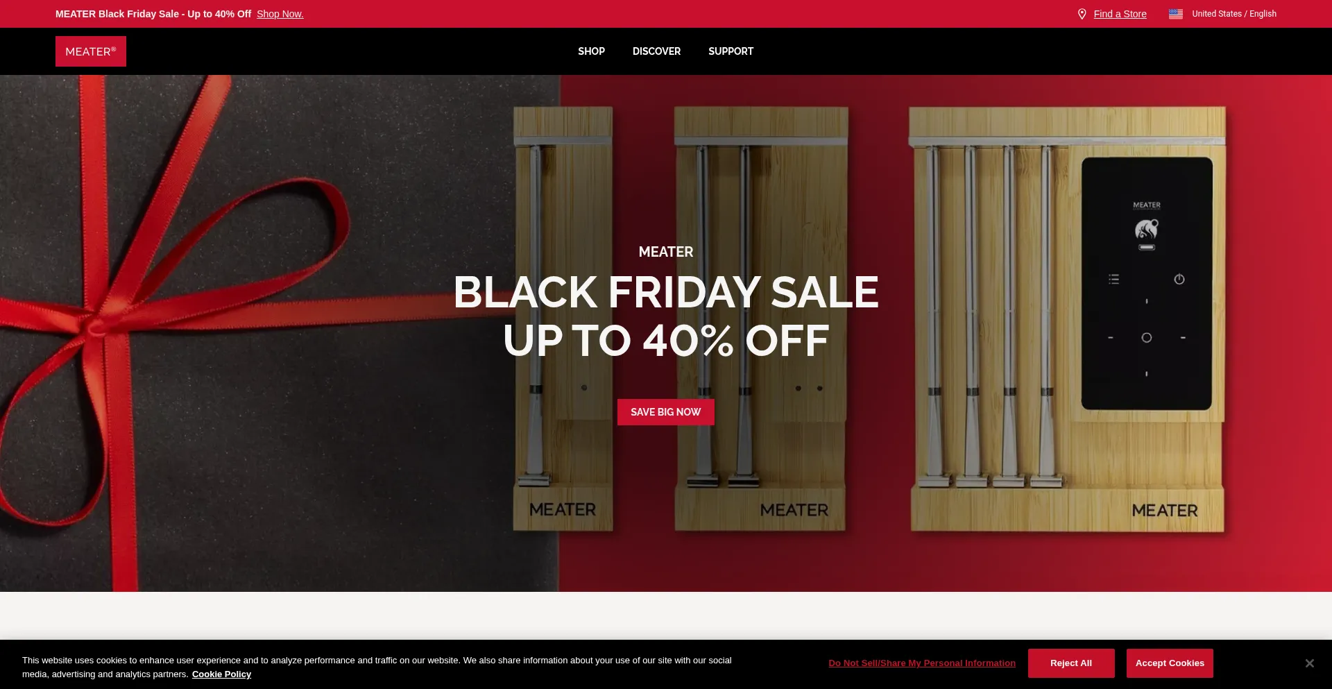该网站实现符合GDPR或CCPA等隐私法规的cookie同意机制。这表明 meater.com 遵守数据保护标准并为用户提供对个人数据收集实践的控制。