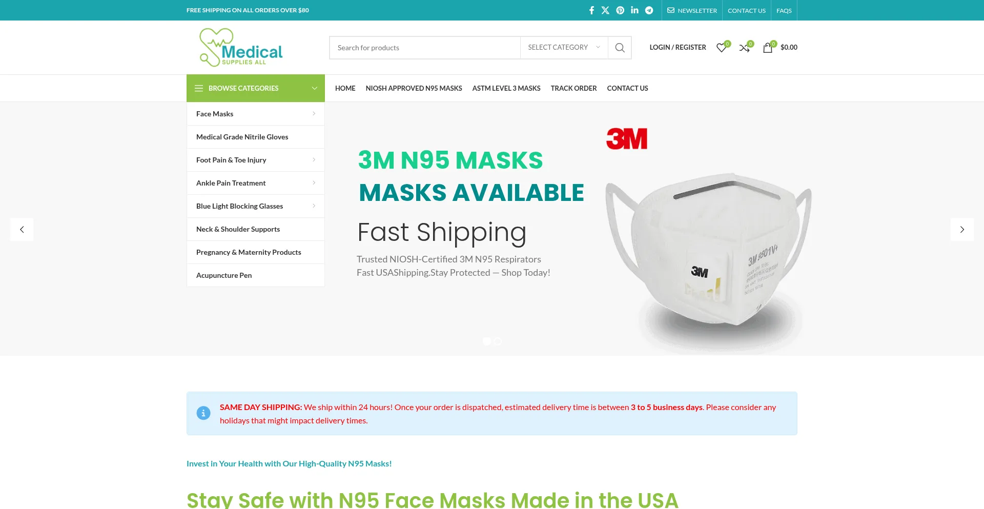 网站上存在社交媒体链接表明 medicalsuppliesall.com 在社交媒体上维护官方账户,这是可信度和参与度的积极信号。