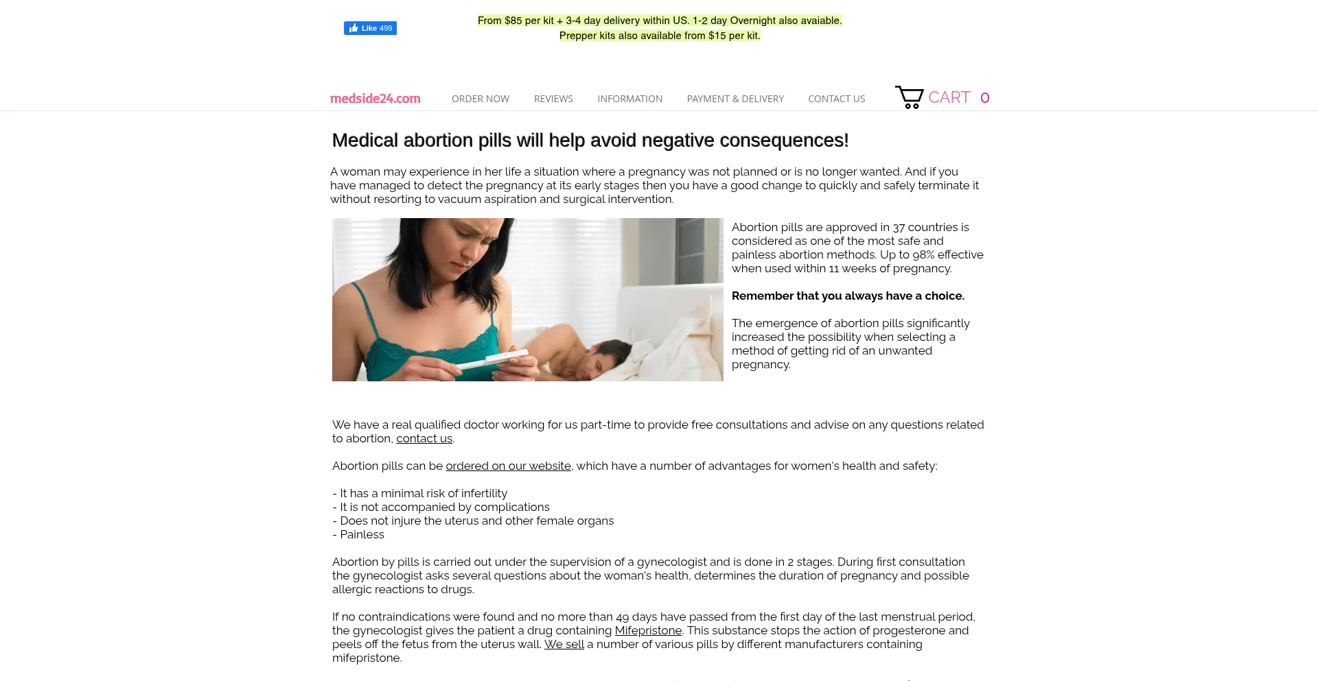 Mifigest kit (Abortion pill) allows you to have a medical abortion at home. Order online at Medside24 with 3-5 day delivery to EU, US and AU.