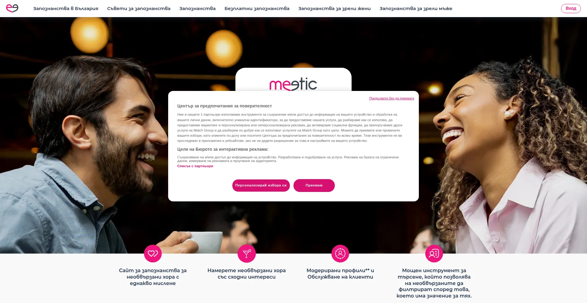 该网站实现符合GDPR或CCPA等隐私法规的cookie同意机制。这表明 meetic.bg 遵守数据保护标准并为用户提供对个人数据收集实践的控制。