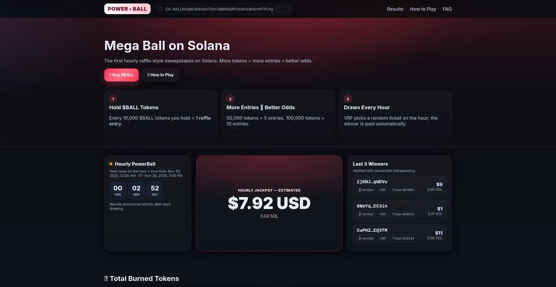Mega Ball on Solana – Hourly Raffle