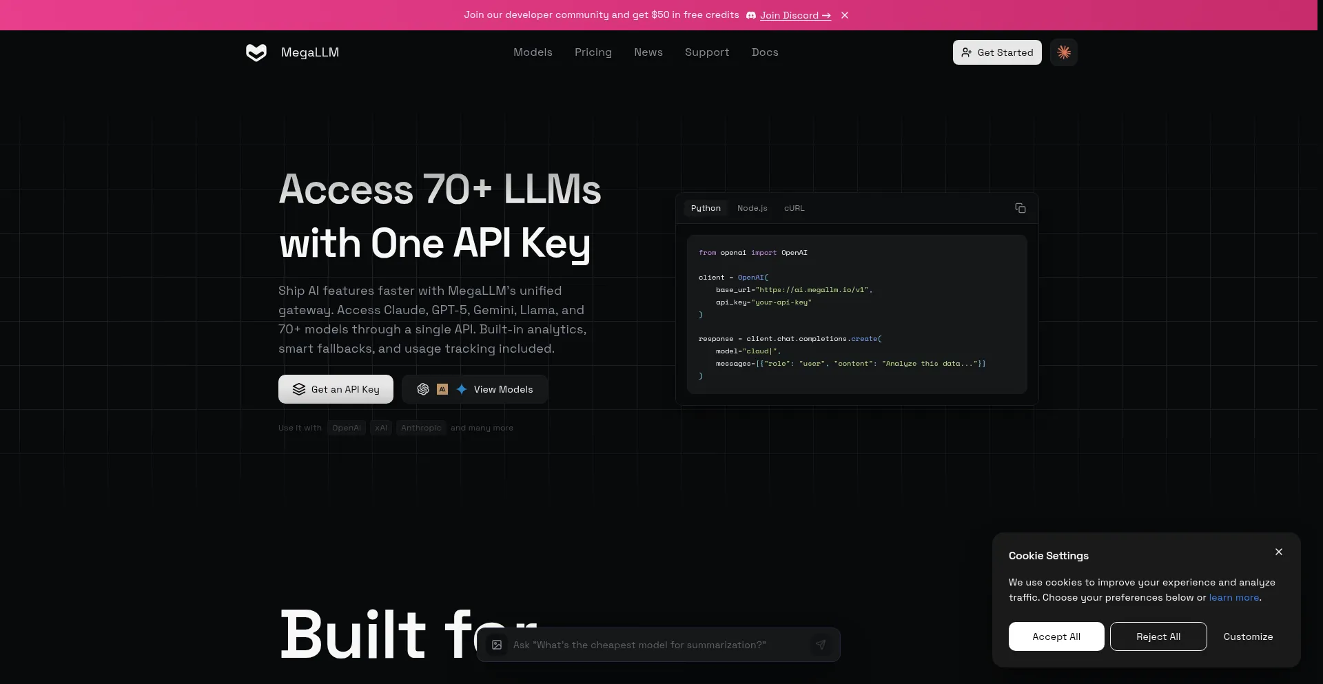 MegaLLM - 70+ LLMs, One API | AI Gateway for Developers