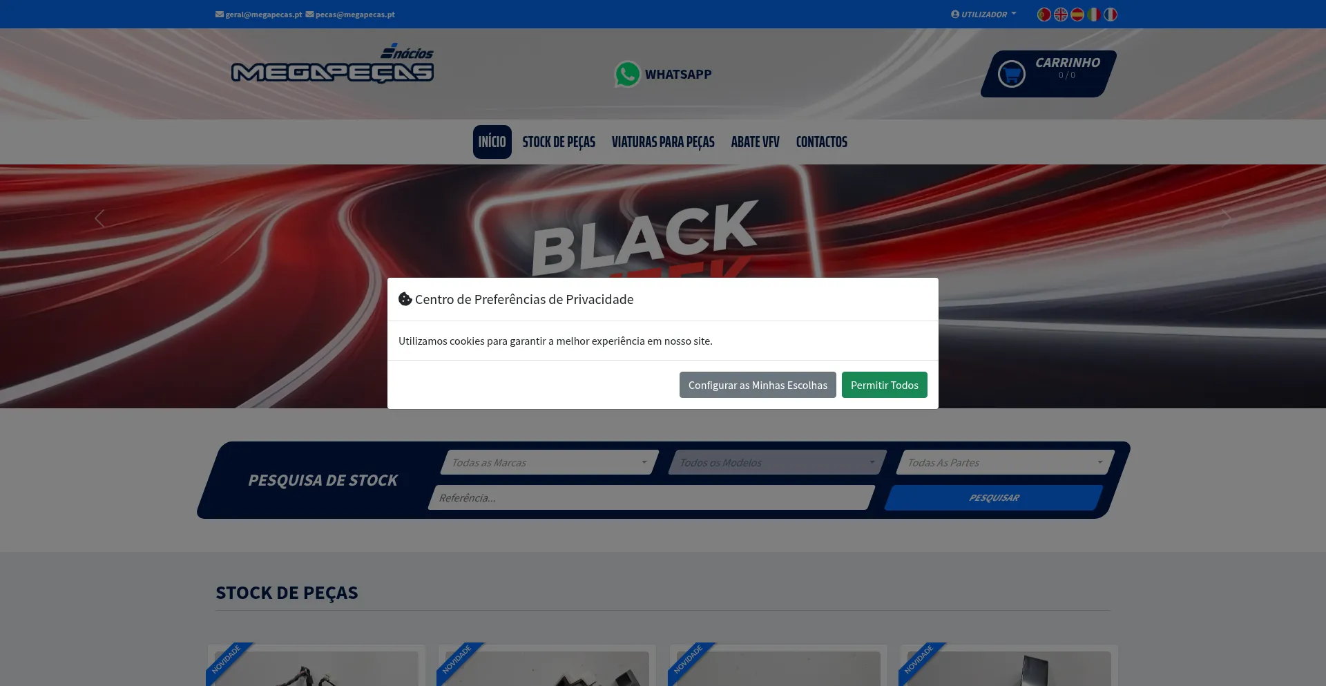 该网站实现数据收集表单,请求个人信息,包括姓名、电子邮件地址、电话号码或其他敏感详细信息。用户应验证 megapecas.pt 的合法性并在提交个人数据前查看隐私政策。