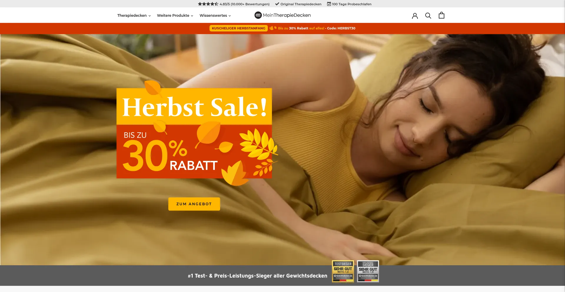 meintherapiedecken.de 使用 Bootstrap,这是一个广泛采用的开源响应式网页开发框架。Bootstrap 通过标准化组件和样式实现移动友好界面的高效创建。