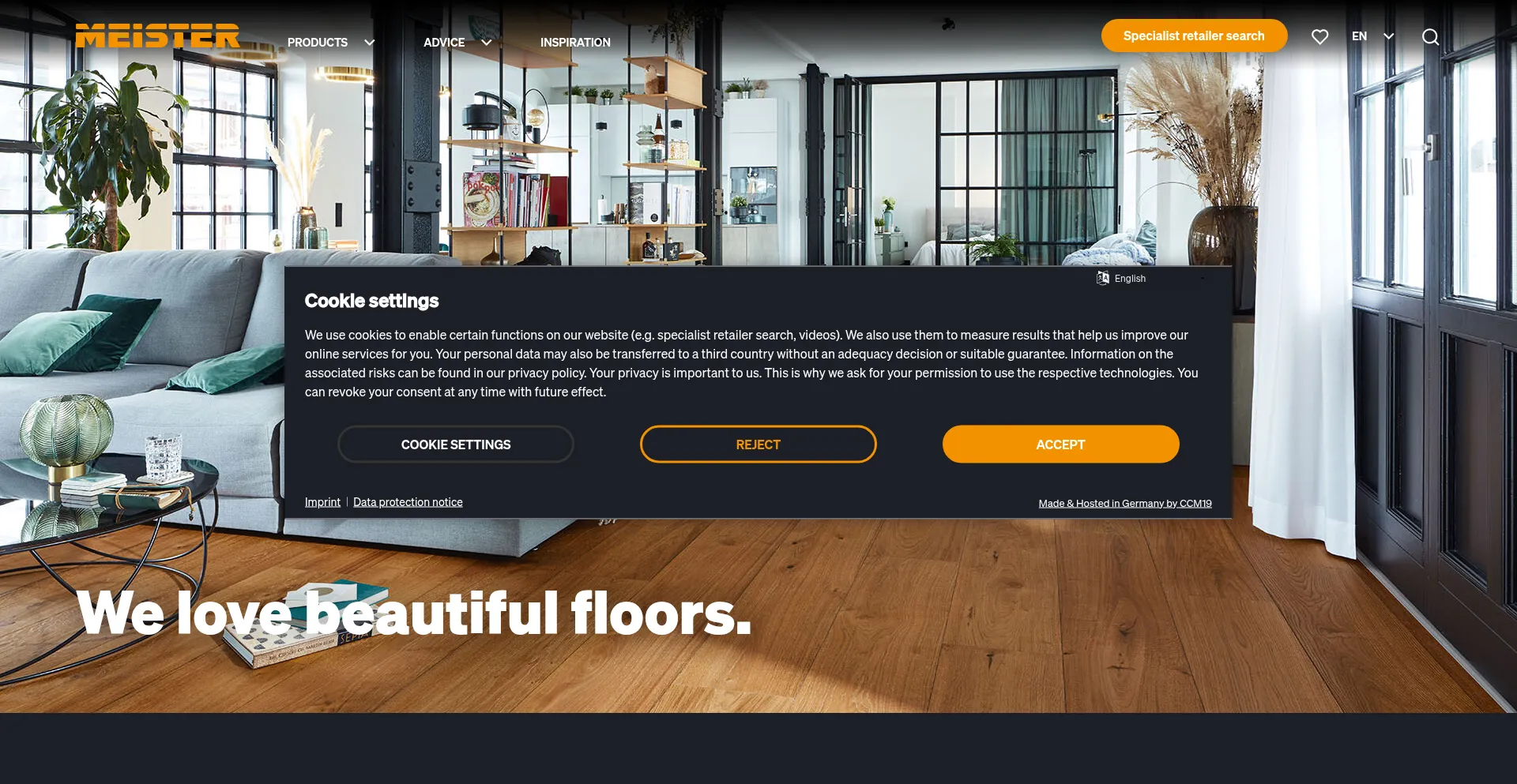 该网站实现符合GDPR或CCPA等隐私法规的cookie同意机制。这表明 meister.com 遵守数据保护标准并为用户提供对个人数据收集实践的控制。