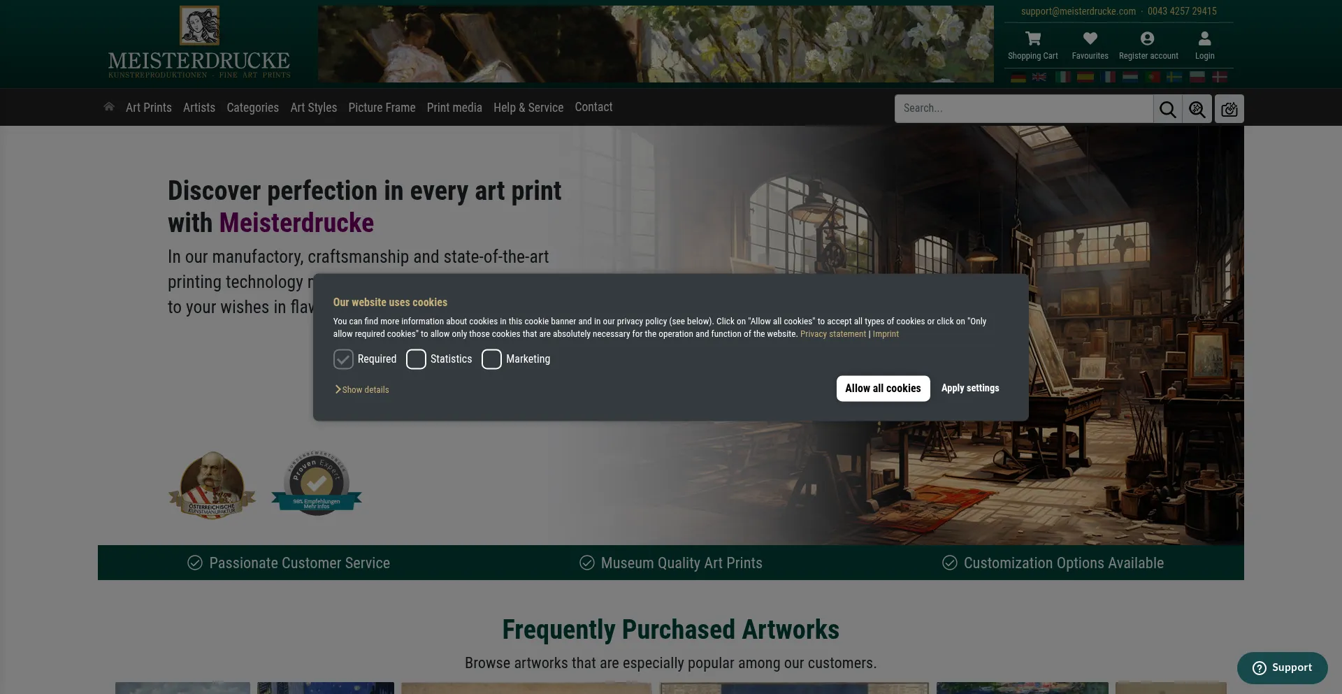 该网站实现符合GDPR或CCPA等隐私法规的cookie同意机制。这表明 meisterdrucke.us 遵守数据保护标准并为用户提供对个人数据收集实践的控制。