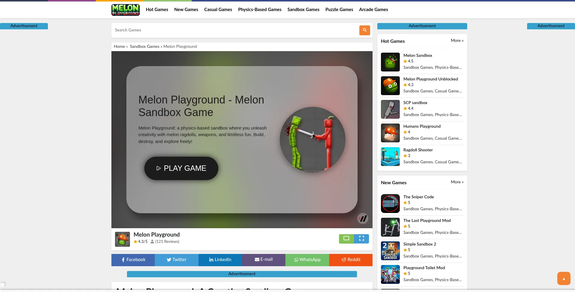 Melon Playground: a physics-based sandbox where you unleash creativity with melon ragdolls, weapons, and limitless fun. Build, destroy, and explore freely!