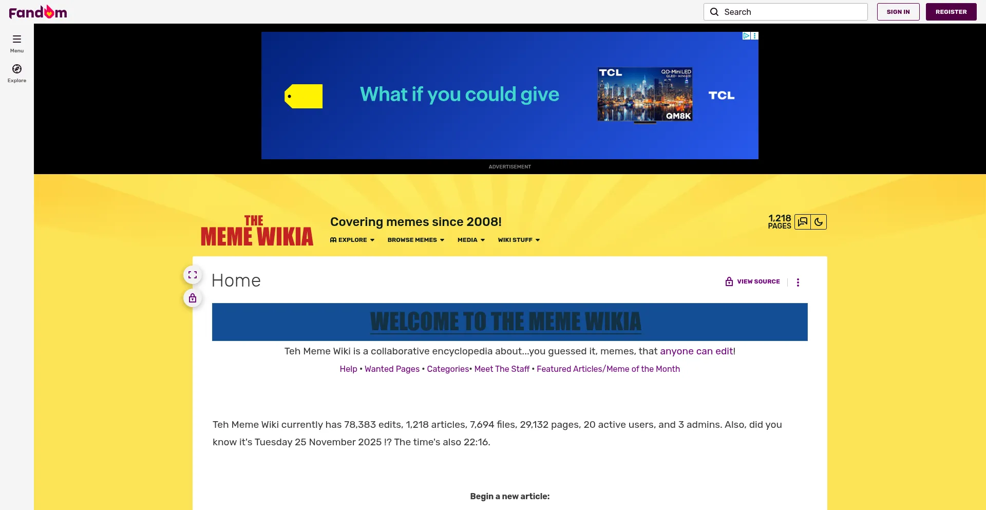 meme.fandom.com 提供 Android 设备移动应用程序,表明平台存在已扩展到网络服务之外。